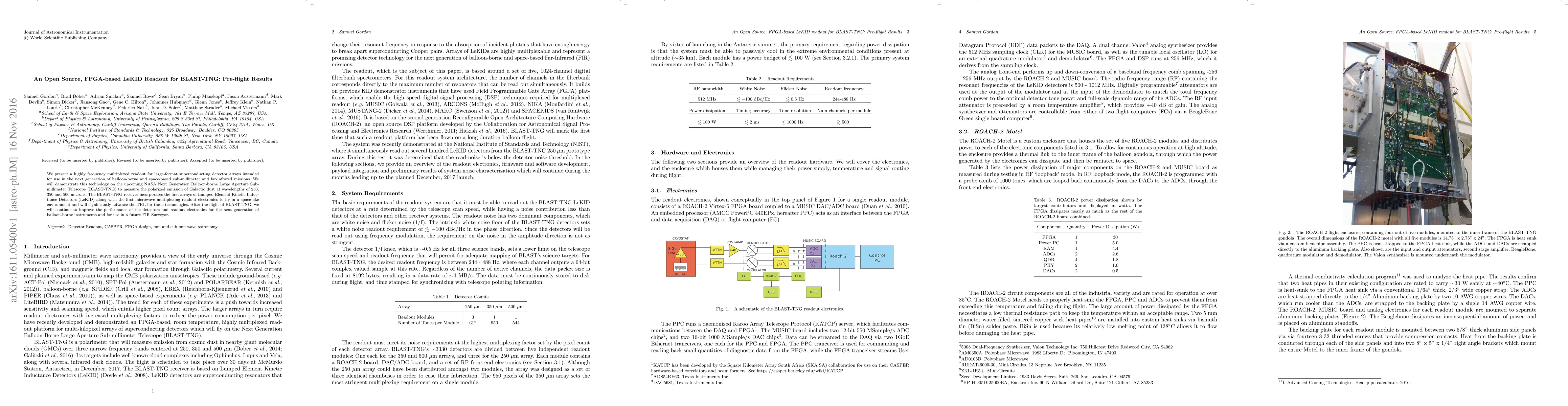 This paper presents an open-source, FPGA-based readout system for large-format superconducting detector arrays, specifically for the BLAST-TNG telescope. The technology aims to measure polarized Galactic dust emission and will be tested on the upcoming NASA mission.