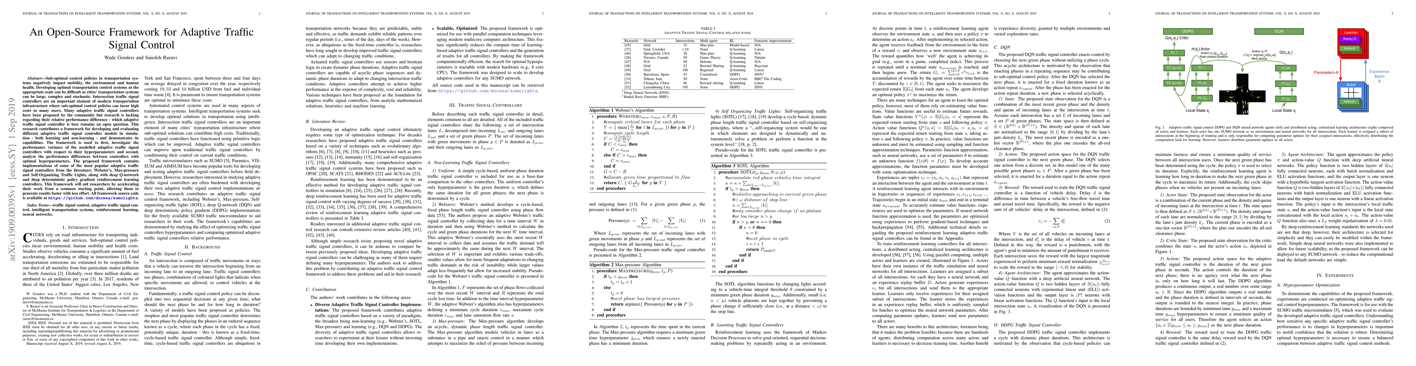 This paper presents an open-source framework for evaluating adaptive traffic signal controllers, including both learning and non-learning models. The framework aims to facilitate research by providing a common platform for testing various controllers, thus accelerating the development of optimal traffic control policies.