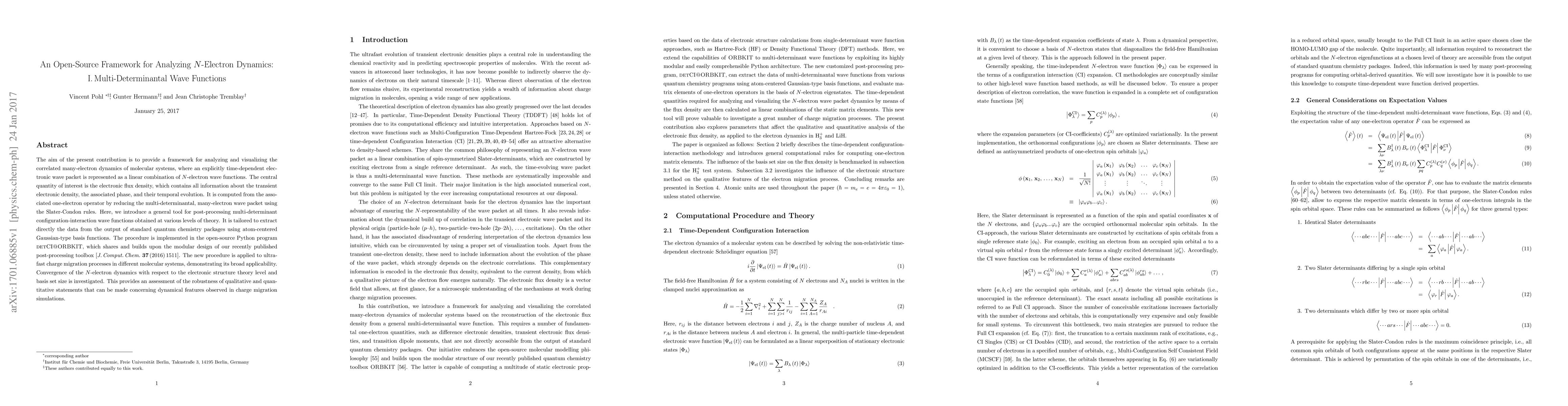 A new open-source framework allows for analyzing $N$-electron dynamics in molecular systems by extracting electronic flux density from multi-determinantal wave functions, enabling broad applicability in understanding ultrafast charge migration processes.