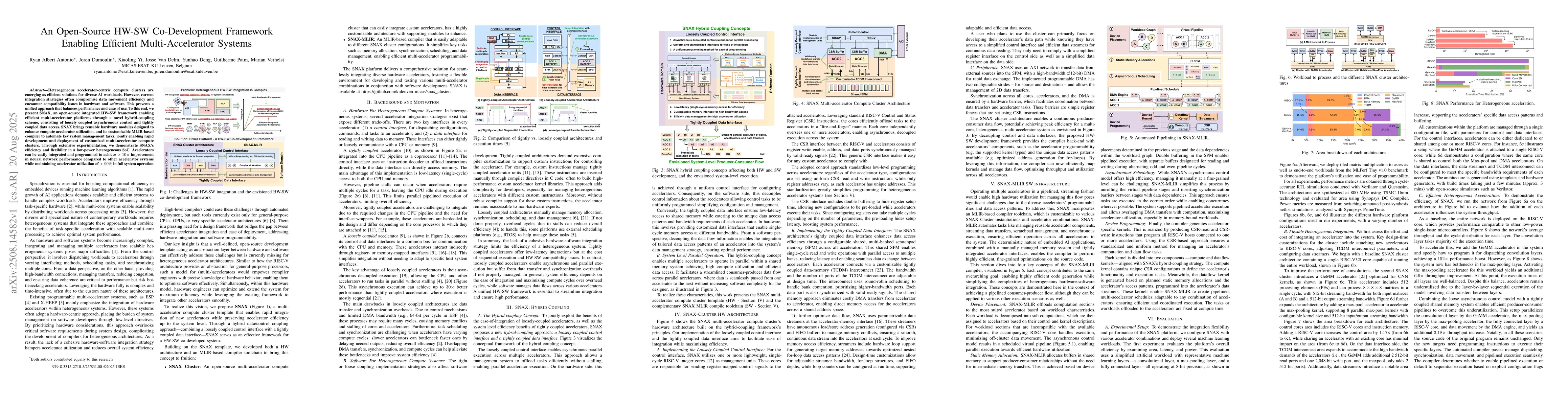 The research presents SNAX, an open-source HW-SW co-development framework for efficient multi-accelerator systems, utilizing a novel hybrid-coupling scheme for loosely coupled asynchronous control and tightly coupled data access.