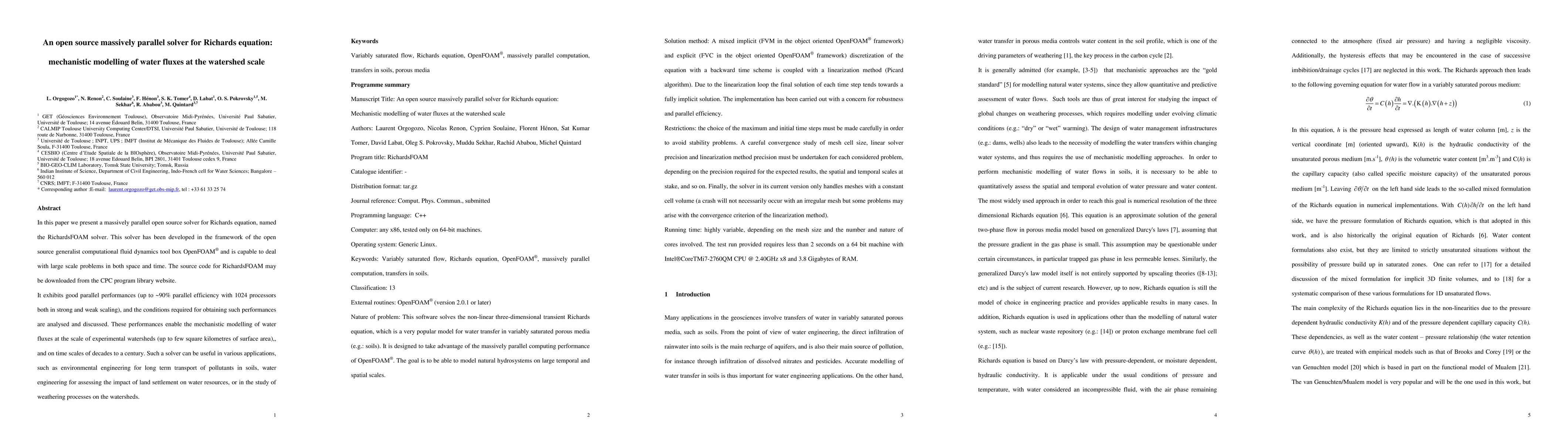 This paper introduces RichardsFOAM, a massively parallel open source solver for Richards equation, developed within the OpenFOAM framework, which enables large-scale mechanistic modeling of water fluxes at watershed scales. The solver demonstrates high parallel efficiency and can be used for applications like pollutant transport, land settlement impact assessment, and weathering processes.