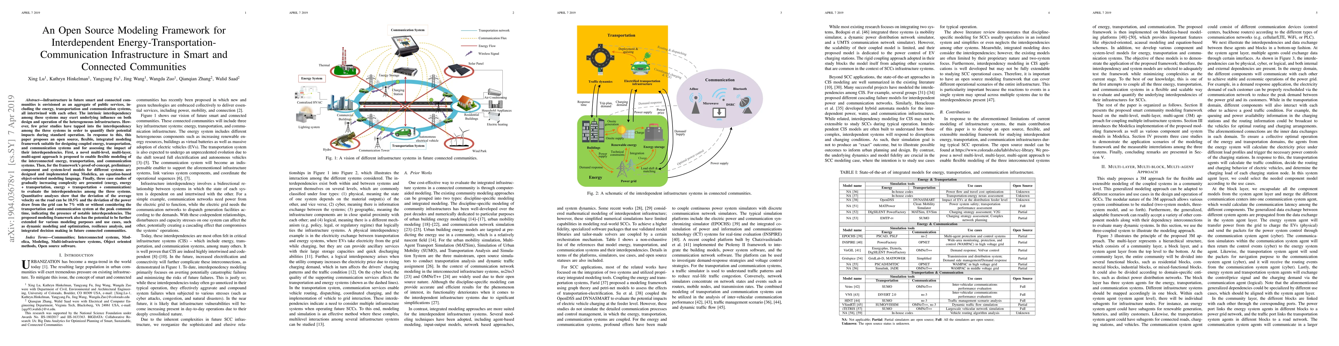 This paper proposes an open-source modeling framework to integrate and assess the interdependencies among energy, transportation, and communication systems in smart communities. The framework employs a multi-level, multi-agent approach and uses Modelica for modeling, demonstrating significant interdependencies through case studies.