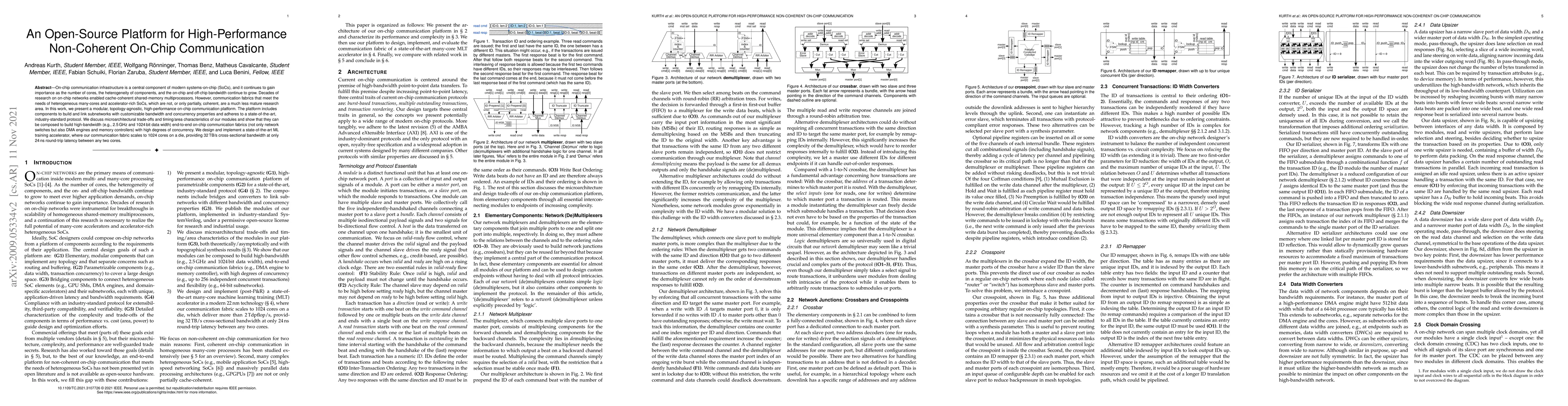 This paper presents a modular, high-performance open-source platform for non-coherent on-chip communication, enabling scalable, high-bandwidth, and concurrent communication fabrics for heterogeneous many-core systems. The platform demonstrates significant performance gains, including 32 TB/s bandwidth and 24 ns latency in a 1024-core ML training accelerator.