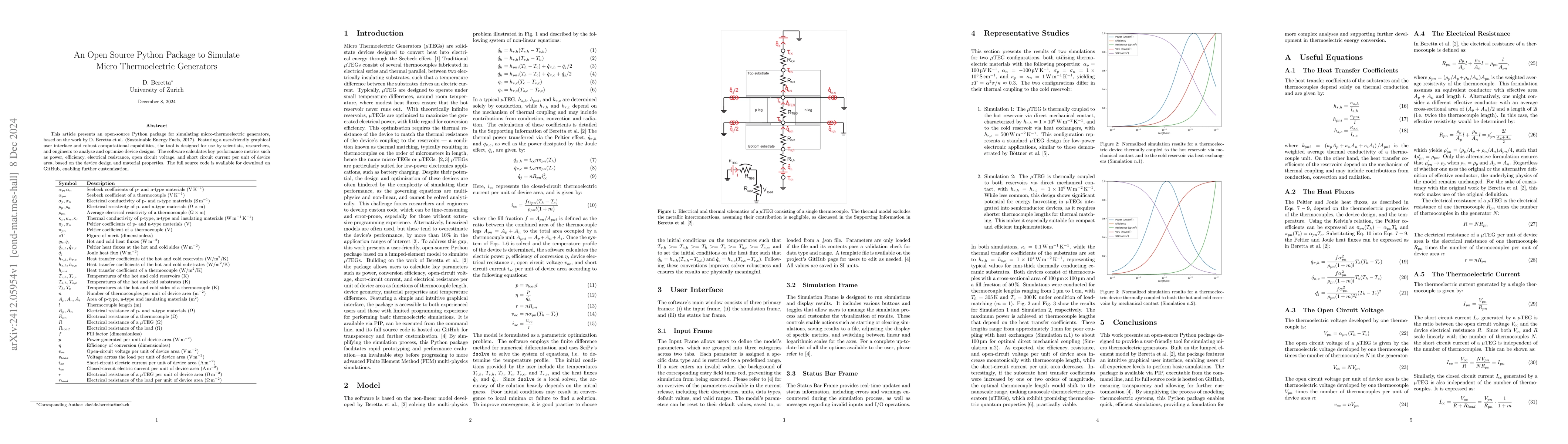 This paper introduces an open-source Python package for simulating micro-thermoelectric generators, developed based on Beretta et al.'s research. The tool offers a user-friendly interface, computes essential performance metrics, and is freely accessible on GitHub for customization by the scientific community.