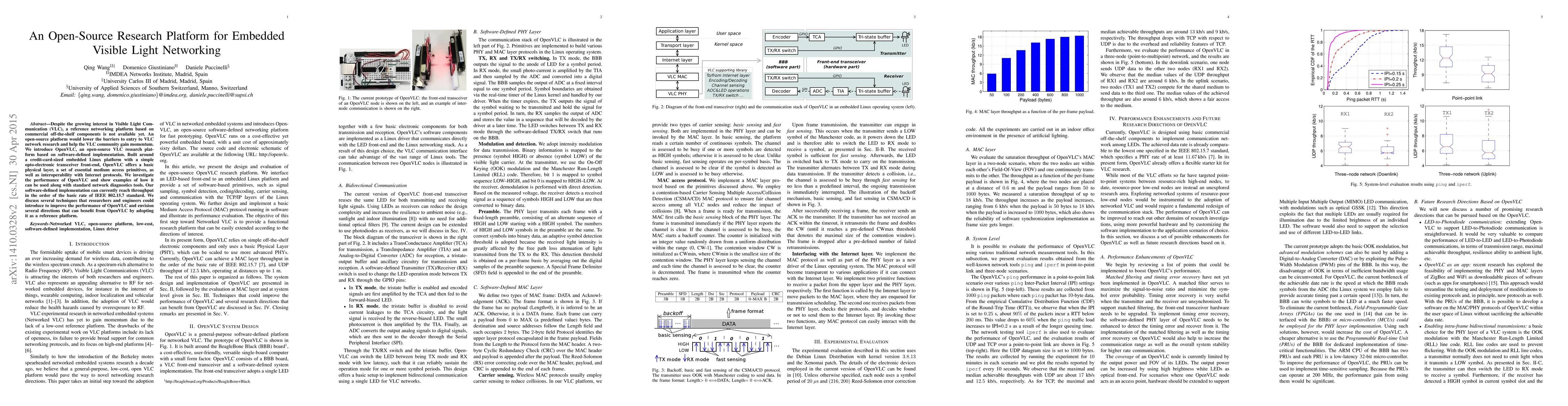 OpenVLC is an open-source platform for research in Visible Light Communication (VLC) based on a software-defined implementation, offering basic physical layer and medium access primitives. It aims to lower entry barriers for VLC research and enhance community momentum.