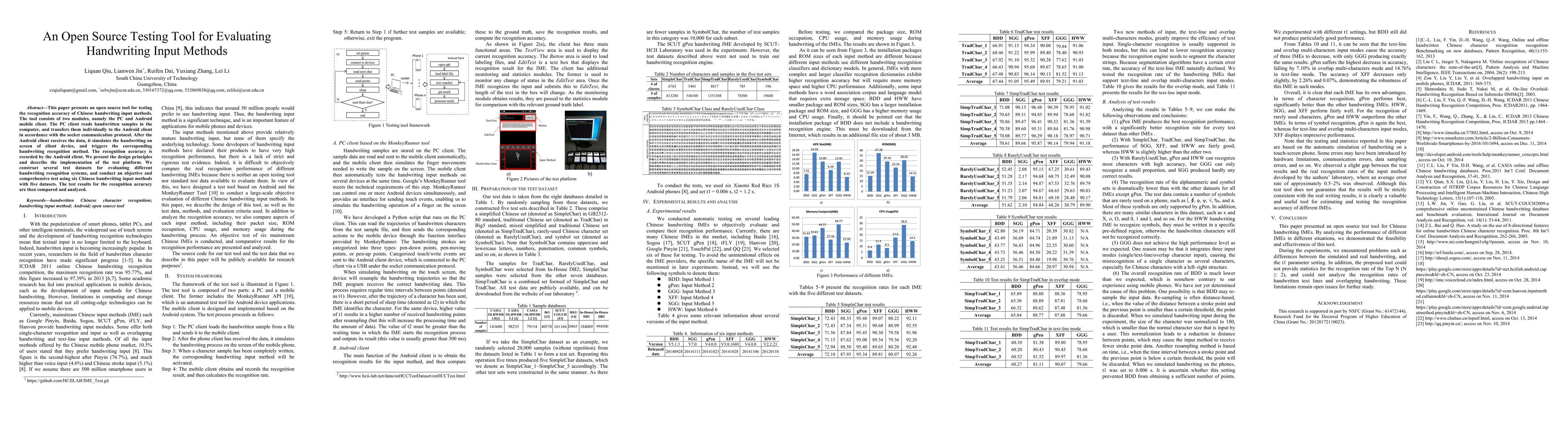 This paper introduces an open source tool for assessing the recognition accuracy of Chinese handwriting input methods, featuring PC and Android modules for testing. The tool evaluates six input methods using multiple datasets, providing a comparative analysis of their recognition accuracies.