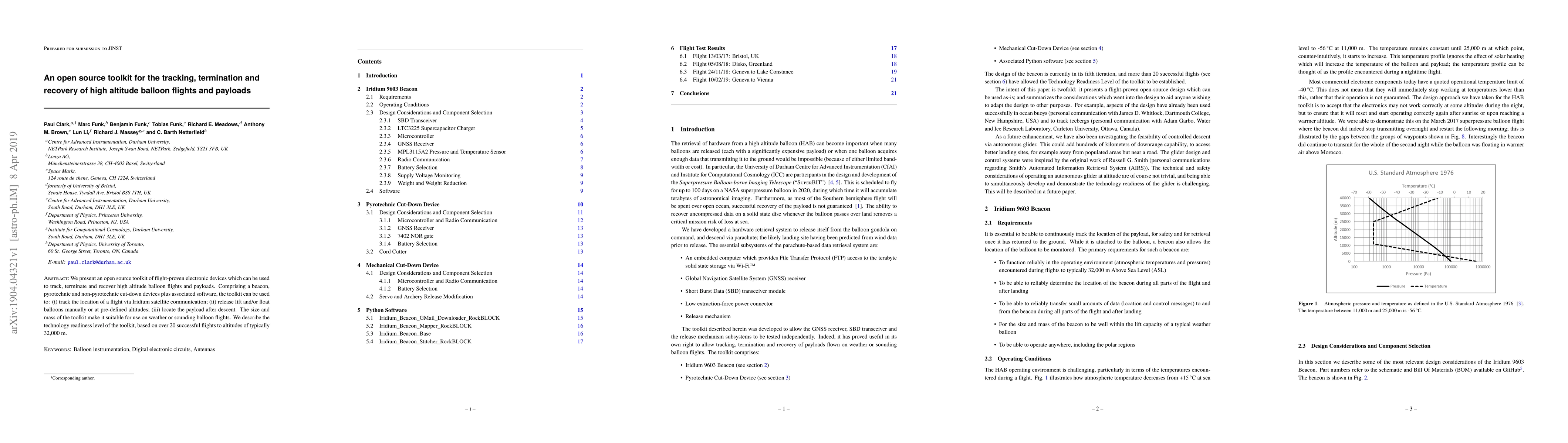This paper introduces an open source toolkit for tracking, terminating, and recovering high altitude balloon flights and payloads, featuring electronic devices and software for satellite communication, altitude-based cut-down mechanisms, and post-descent payload location. The toolkit has been flight-tested over 20 times to altitudes of around 32,000 meters.