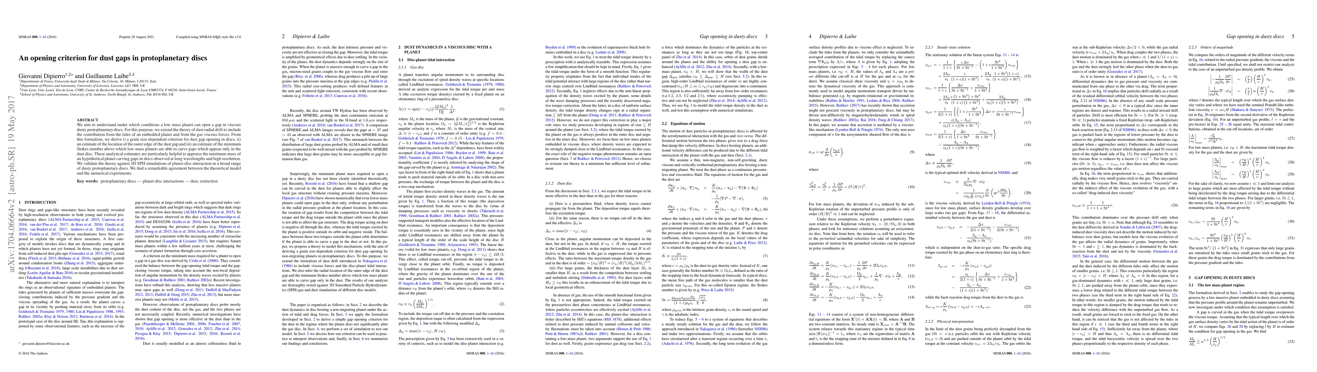 This paper develops a theoretical framework to determine the conditions under which low-mass planets can carve gaps in viscous dusty protoplanetary discs, incorporating tidal and gas viscous forces. The model provides grain size-dependent criteria for dust gap formation and estimates of gap locations and minimum planet mass for gap visibility.