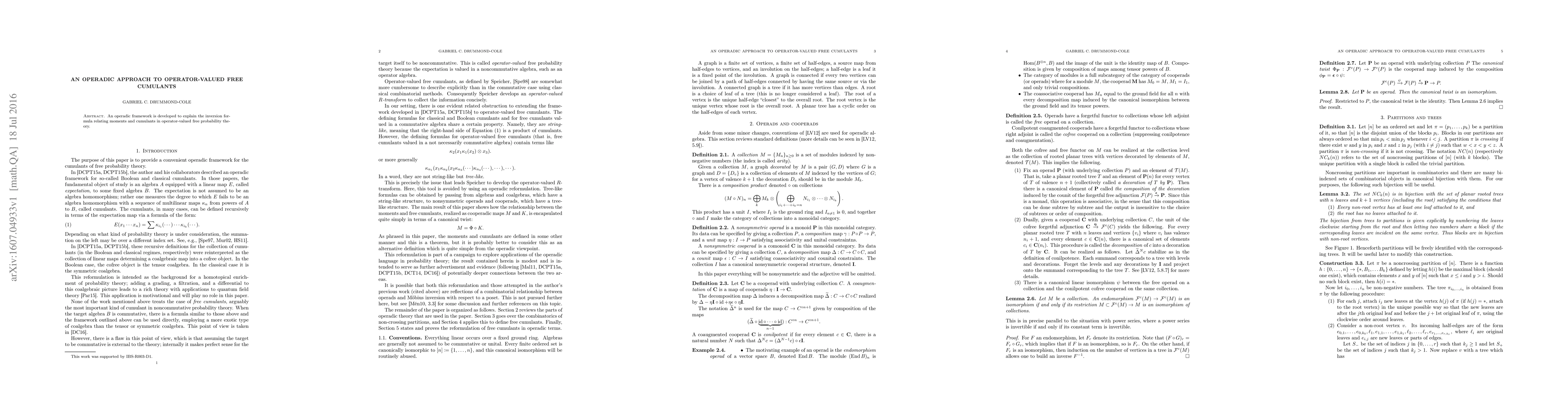 An operadic framework is developed to explain the inversion formula relating moments and cumulants in operator-valued free probability theory.