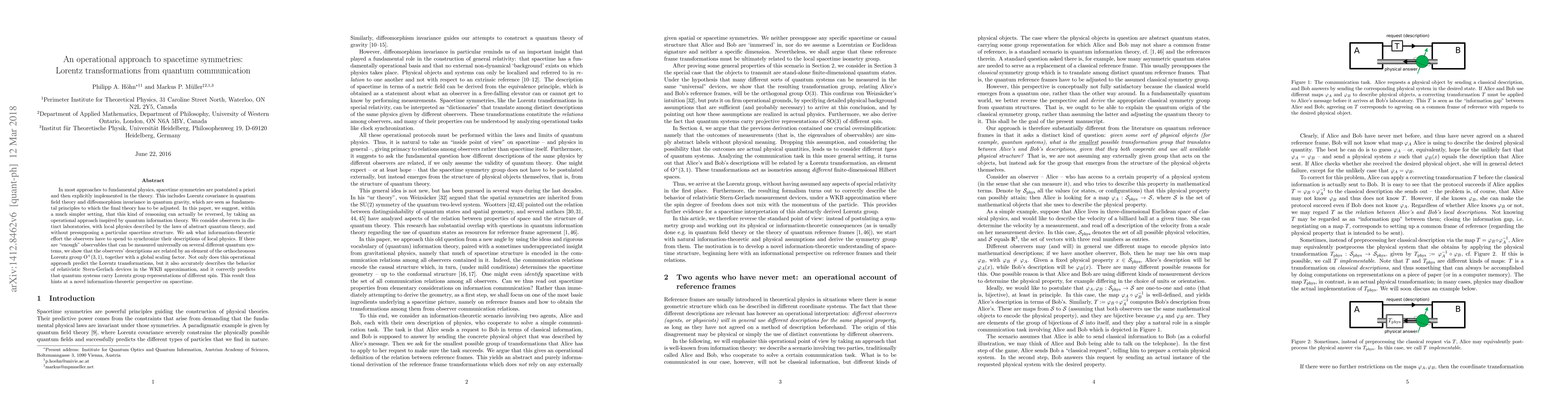 Researchers propose an operational approach to spacetime symmetries inspired by quantum information theory, showing that observers in distinct laboratories can synchronize their descriptions of local physics using Lorentz transformations.