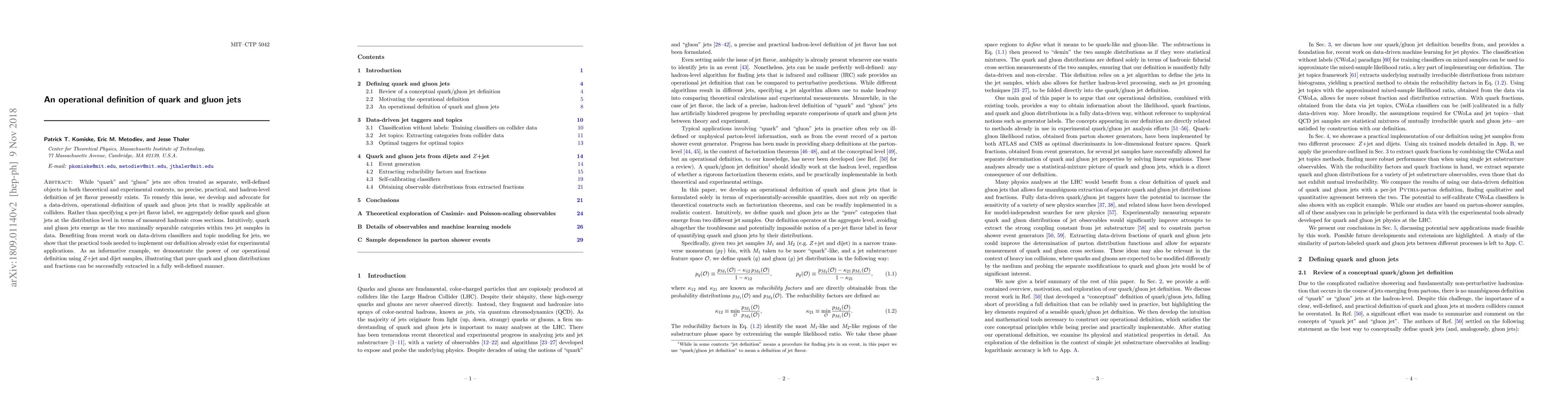 This paper proposes a practical, data-driven operational definition for quark and gluon jets, defining them based on the distribution of measured hadronic cross sections rather than individual jet flavors. The method leverages existing data-driven classifiers and demonstrates its effectiveness using Z+jet and dijet samples.