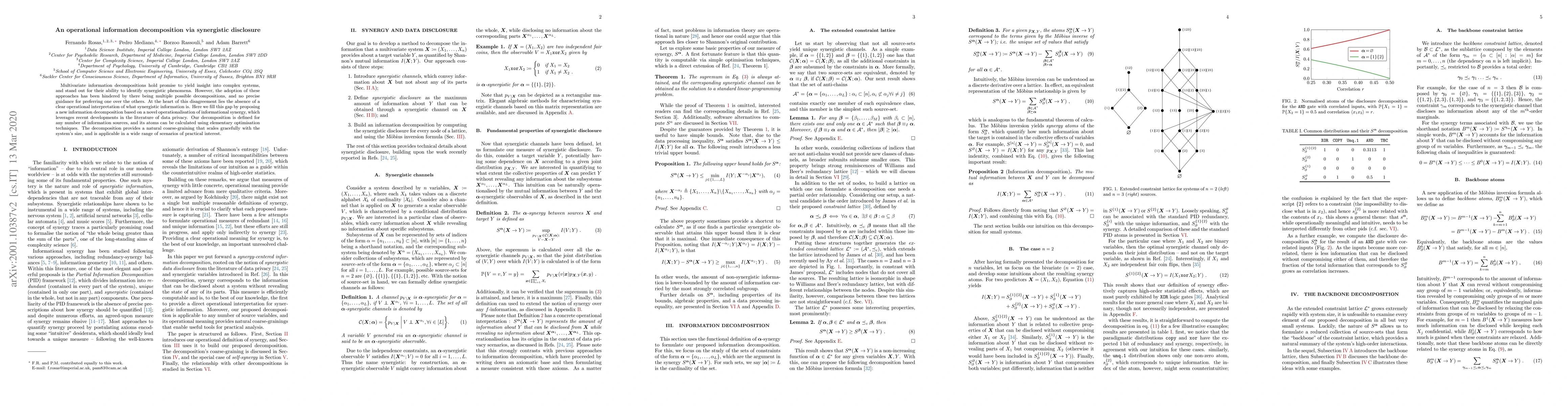 Multivariate information decompositions hold promise to yield insight into complex systems, and stand out for their ability to identify synergistic phenomena. However, the adoption of these approaches has been hindered by there being multiple possible decompositions, and no precise guidance for preferring one over the others. At the heart of this disagreement lies the absence of a clear operational interpretation of what synergistic information is. Here we fill this gap by proposing a new information decomposition based on a novel operationalisation of informational synergy, which leverages recent developments in the literature of data privacy. Our decomposition is defined for any number of information sources, and its atoms can be calculated using elementary optimisation techniques. The decomposition provides a natural coarse-graining that scales gracefully with the system's size, and is applicable in a wide range of scenarios of practical interest.