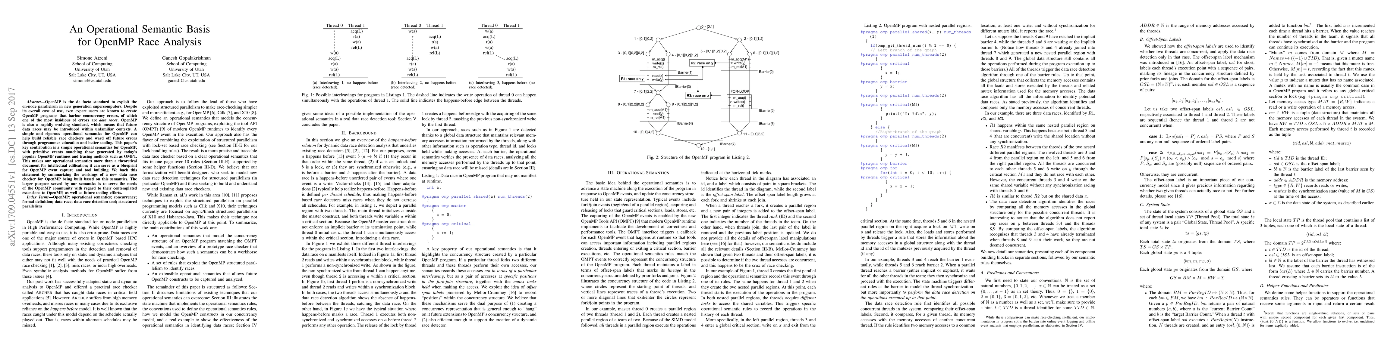 OpenMP is the de facto standard to exploit the on-node parallelism in new generation supercomputers.Despite its overall ease of use, even expert users are known to create OpenMP programs that harbor concurrency errors, of which one of the most insidious of errors are {\em data races}.OpenMP is also a rapidly evolving standard, which means that future data races may be introduced within unfamiliar contexts.A simple and rigorous operational semantics for OpenMP can help build reliable race checkers and ward off future errors through programmer education and better tooling.This paper's key contribution is a simple operational semantics for OpenMP, with primitive events matching those generated by today's popular OpenMP runtimes and tracing methods such as OMPT.This makes our operational semantics more than a theoretical document for intellectual edification; it can serve as a blueprint for OpenMP event capture and tool building.We back this statement by summarizing the workings of a new data race checker for OpenMP being built based on this semantics.The larger purpose served by our semantics is to serve the needs of the OpenMP community with regard to their contemplated extensions to OpenMP, as well as future tooling efforts.
