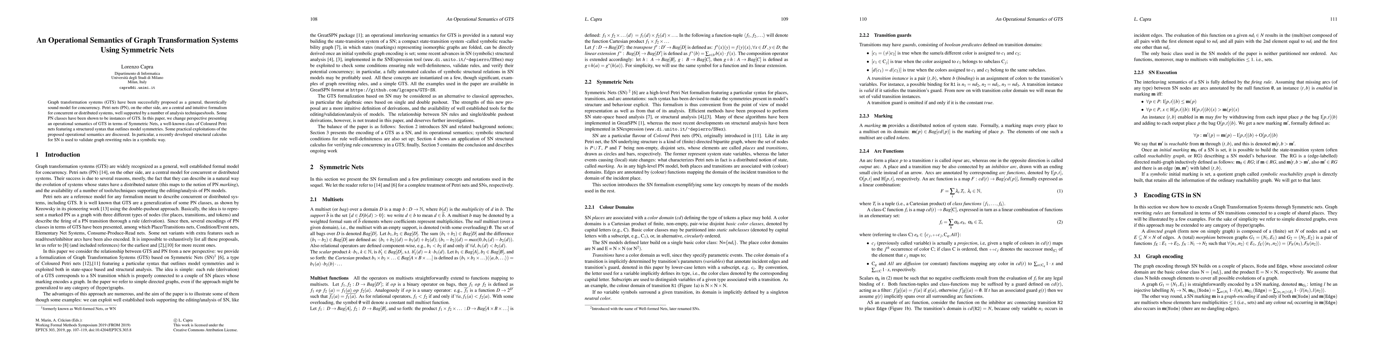 This paper proposes an operational semantics for Graph Transformation Systems (GTS) using Symmetric Nets, a class of Coloured Petri nets, to leverage their structured syntax and model symmetries. It discusses practical applications, including the use of a structural calculus for Symmetric Nets to validate graph rewriting rules symbolically.