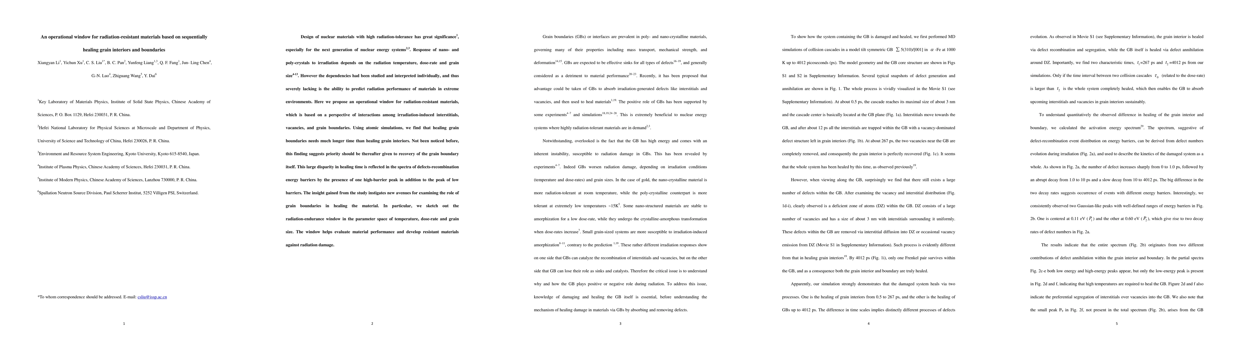 This paper proposes an operational window for radiation-resistant materials based on the sequential healing of grain interiors and boundaries. Using atomic simulations, it highlights the significant disparity in healing time between grain boundaries and interiors, suggesting priority for boundary recovery, and outlines a radiation-endurance window in temperature, dose-rate, and grain size to evaluate material performance and develop radiation-resistant materials.