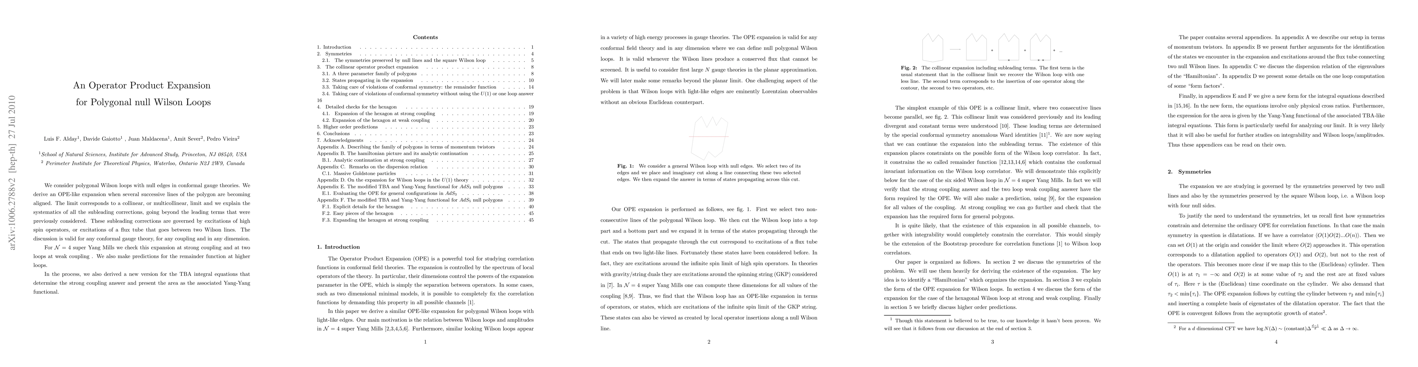 This paper derives an Operator Product Expansion (OPE) for polygonal null Wilson loops in conformal gauge theories, detailing subleading corrections beyond leading terms. The analysis applies to any conformal gauge theory, with specific checks in N=4 super Yang-Mills at strong and weak coupling, and introduces a new version of the TBA integral equations for strong coupling.