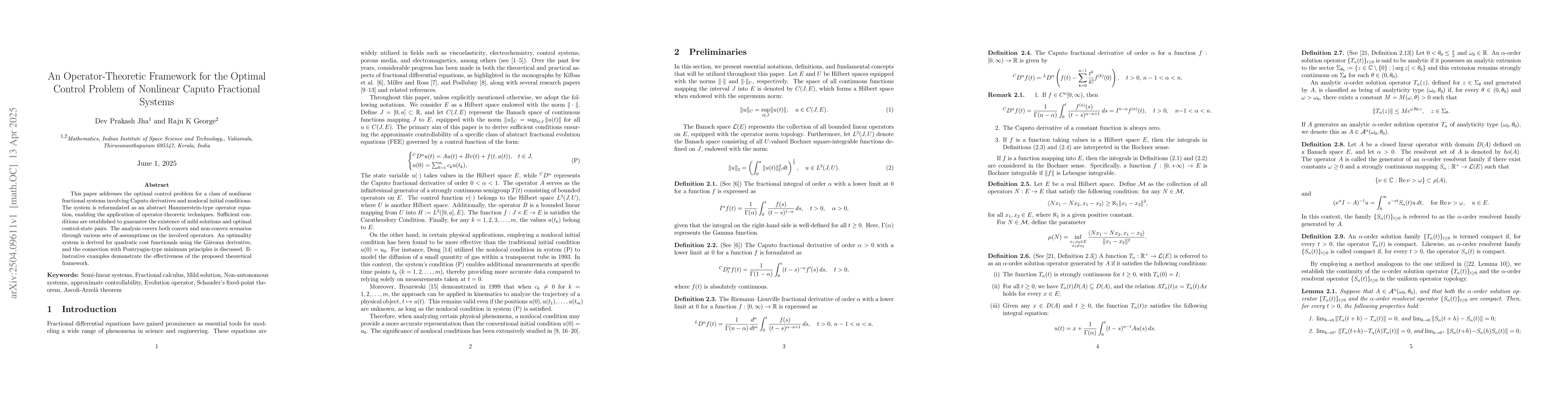 This research contributes to the optimal control theory of nonlinear fractional systems, which have applications in various engineering and physical models, by providing a novel operator-theoretic framework that guarantees existence and optimality conditions.