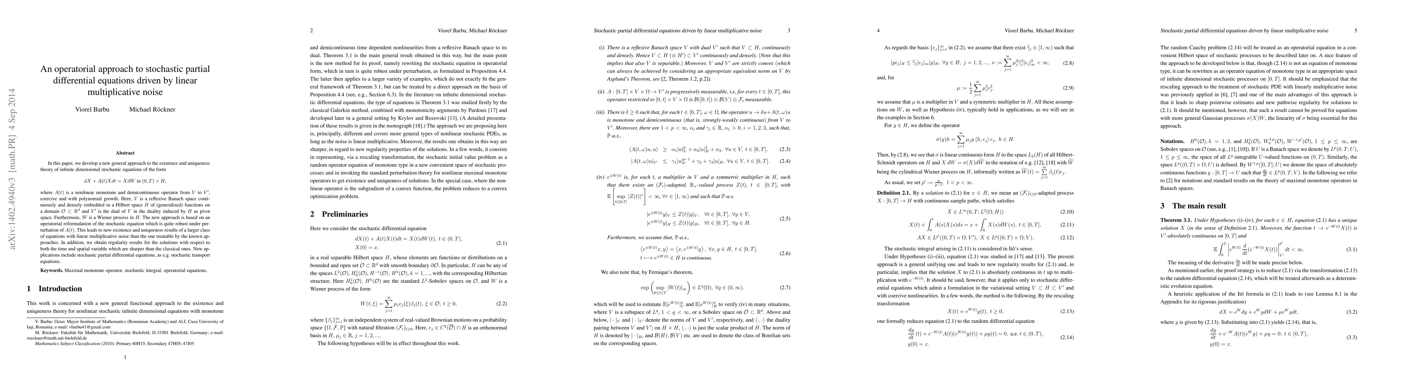 A new approach to solving stochastic partial differential equations is introduced, providing a robust method for existence and uniqueness of solutions with linear multiplicative noise, and obtaining sharper regularity results.
