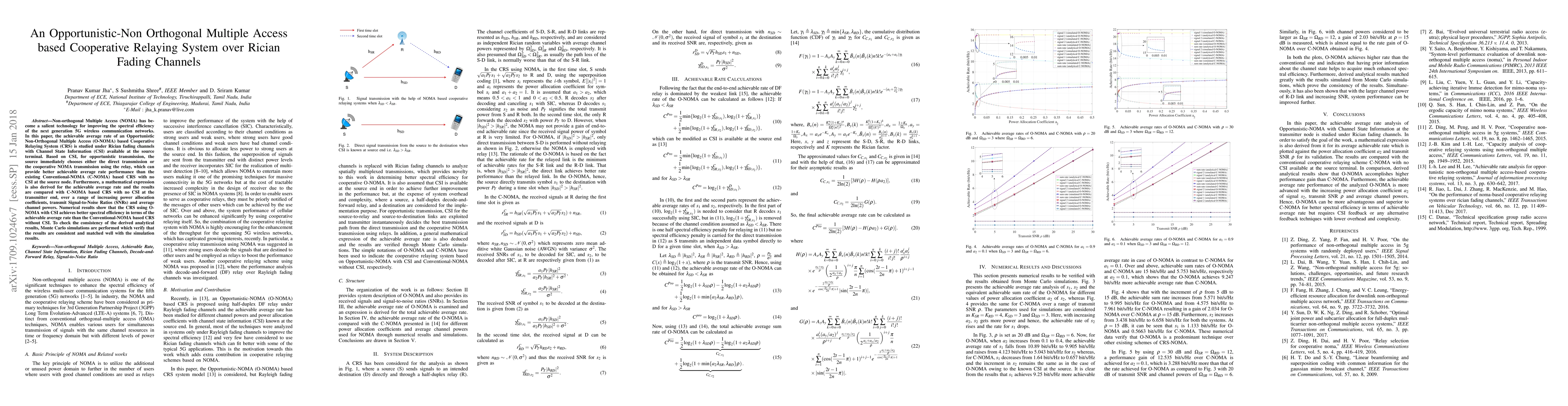 This paper investigates the achievable average rate of an Opportunistic Non-Orthogonal Multiple Access (O-NOMA) based Cooperative Relaying System (CRS) under Rician fading channels, showing improved spectral efficiency compared to Conventional-NOMA (C-NOMA) based CRS. Analytical results show better performance with Channel State Information (CSI) at the source, verified by Monte Carlo simulations.