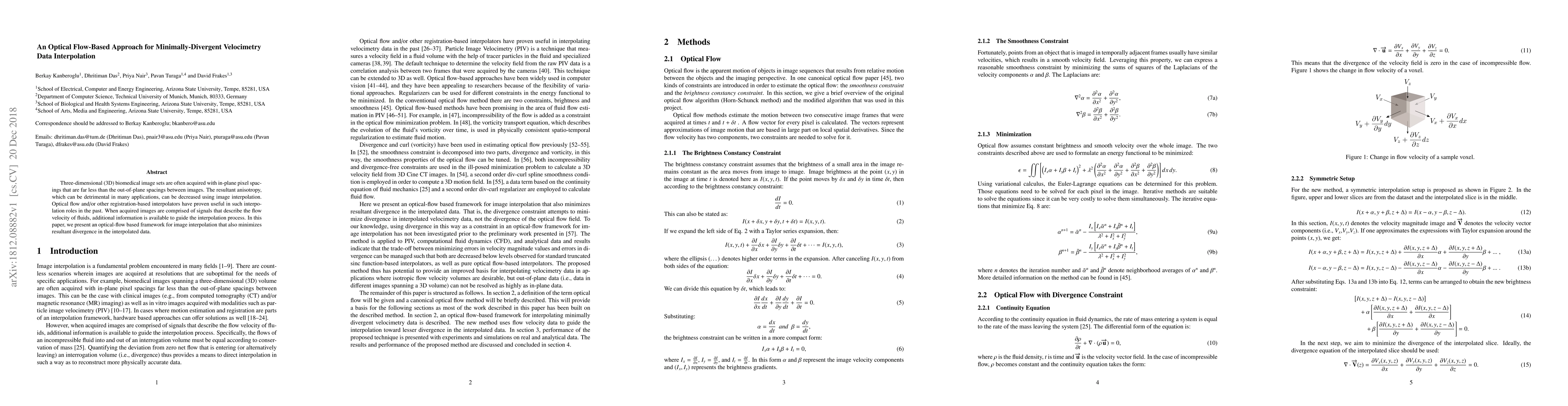 Three-dimensional (3D) biomedical image sets are often acquired with in-plane pixel spacings that are far less than the out-of-plane spacings between images. The resultant anisotropy, which can be detrimental in many applications, can be decreased using image interpolation. Optical flow and/or other registration-based interpolators have proven useful in such interpolation roles in the past. When acquired images are comprised of signals that describe the flow velocity of fluids, additional information is available to guide the interpolation process. In this paper, we present an optical-flow based framework for image interpolation that also minimizes resultant divergence in the interpolated data.