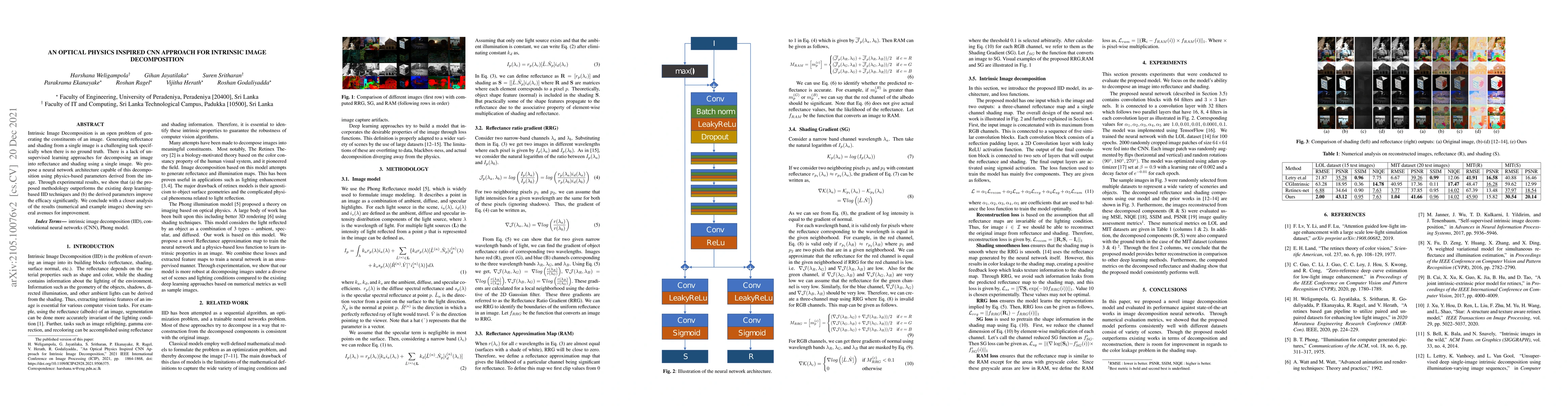 This research introduces an innovative Convolutional Neural Network (CNN) approach inspired by optical physics to decompose intrinsic images into reflectance and shading. The proposed method demonstrates superior performance over existing techniques and highlights potential areas for future enhancements. For further details, I recommend reviewing the full paper.