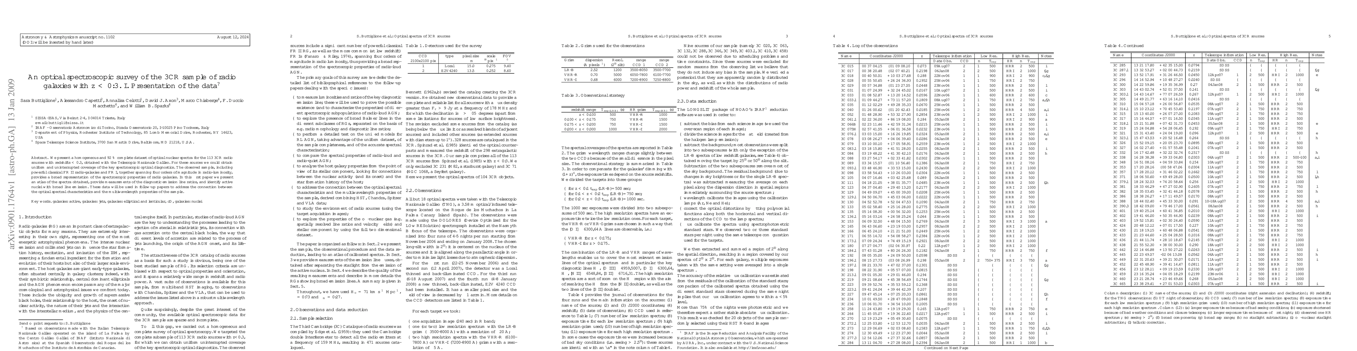 A survey of 113 radio galaxies observed with the Telescopio Nazionale Galileo provided a comprehensive dataset of optical nuclear spectra, offering insights into the spectroscopic properties of these sources.