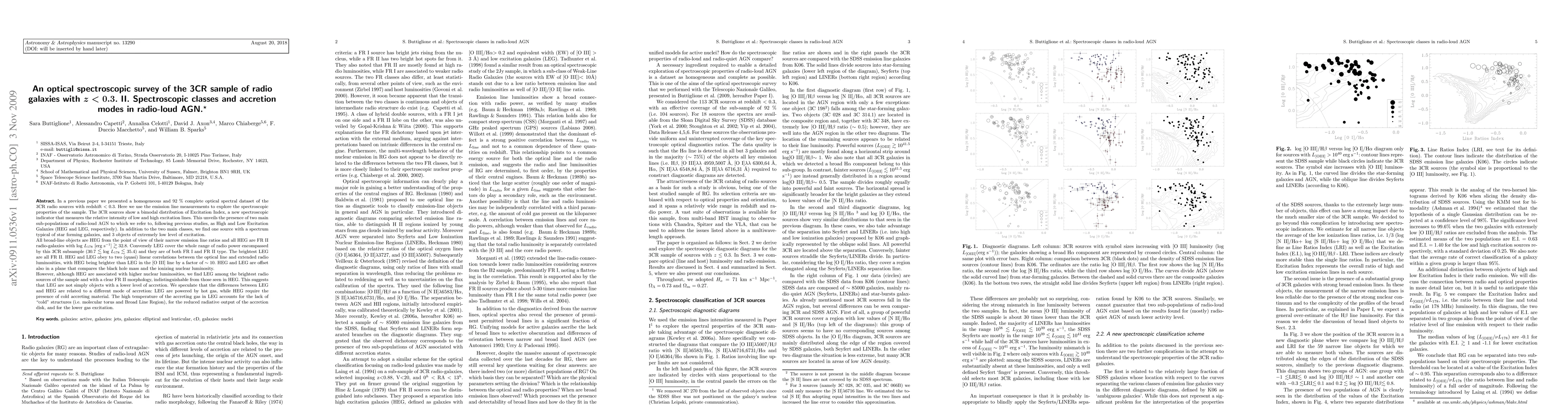 This study identifies two sub-populations of radio-loud AGN in the 3CR sample: High Excitation Galaxies (HEG) with high accretion rates, and Low Excitation Galaxies (LEG) powered by hot gas, which suggests a different mode of accretion.