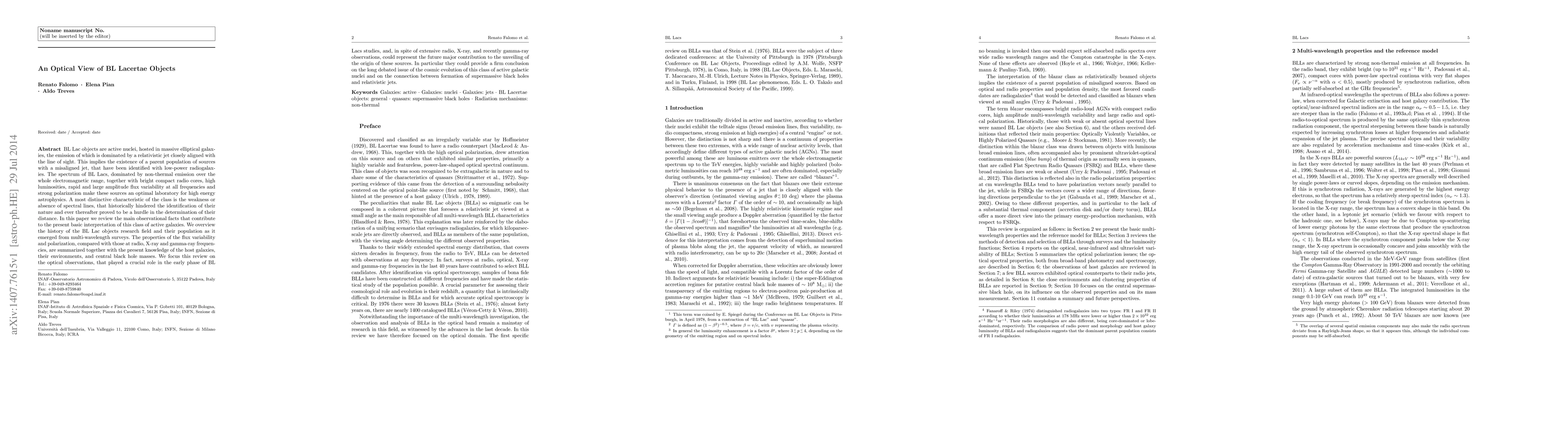 BL Lac objects are active nuclei, hosted in massive elliptical galaxies, the emission of which is dominated by a relativistic jet closely aligned with the line of sight. This implies the existence of a parent population of sources with a misaligned jet, that have been identified with low-power radiogalaxies. The spectrum of BL Lacs, dominated by non-thermal emission over the whole electromagnetic range, together with bright compact radio cores, high luminosities, rapid and large amplitude flux variability at all frequencies and strong polarization make these sources an optimal laboratory for high energy astrophysics. A most distinctive characteristic of the class is the weakness or absence of spectral lines, that historically hindered the identification of their nature and ever thereafter proved to be a hurdle in the determination of their distance. In this paper we review the main observational facts that contribute to the present basic interpretation of this class of active galaxies. We overview the history of the BL Lac objects research field and their population as it emerged from multi-wavelength surveys. The properties of the flux variability and polarization, compared with those at radio, X-ray and gamma-ray frequencies, are summarized together with the present knowledge of the host galaxies, their environments, and central black hole masses. We focus this review on the optical observations, that played a crucial role in the early phase of BL Lacs studies, and, in spite of extensive radio, X-ray, and recently gamma-ray observations, could represent the future major contribution to the unveiling of the origin of these sources. In particular they could provide a firm conclusion on the long debated issue of the cosmic evolution of this class of active galactic nuclei and on the connection between formation of supermassive black holes and relativistic jets.