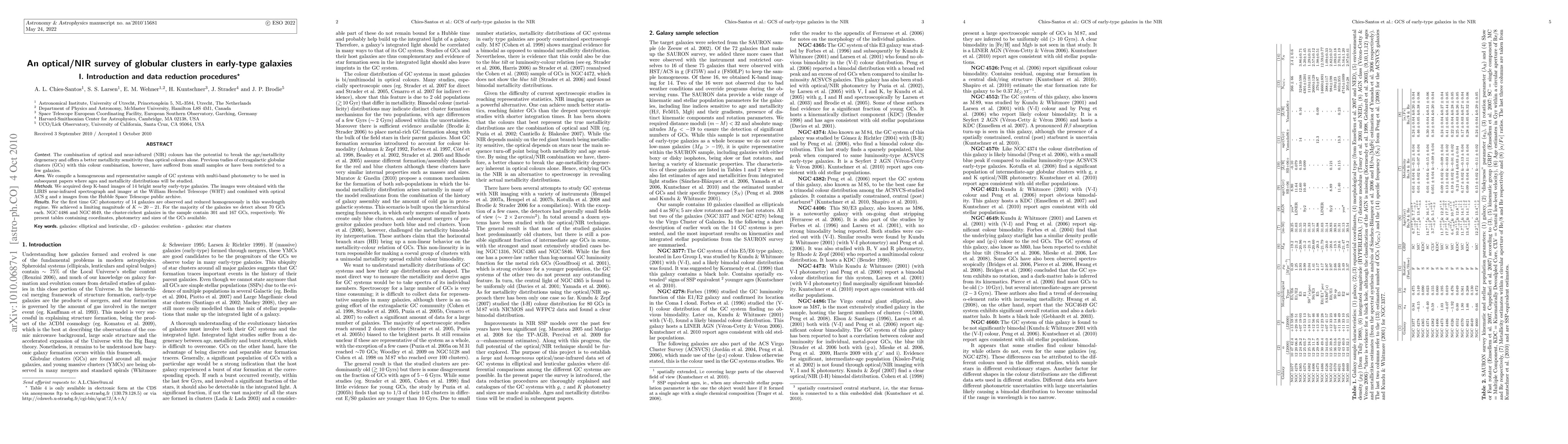 This study compiles a comprehensive sample of globular clusters (GCs) in 14 bright early-type galaxies using deep K-band images and optical ACS g and z images. The aim is to break the age/metallicity degeneracy using optical/NIR colour combinations for subsequent age and metallicity distribution studies.