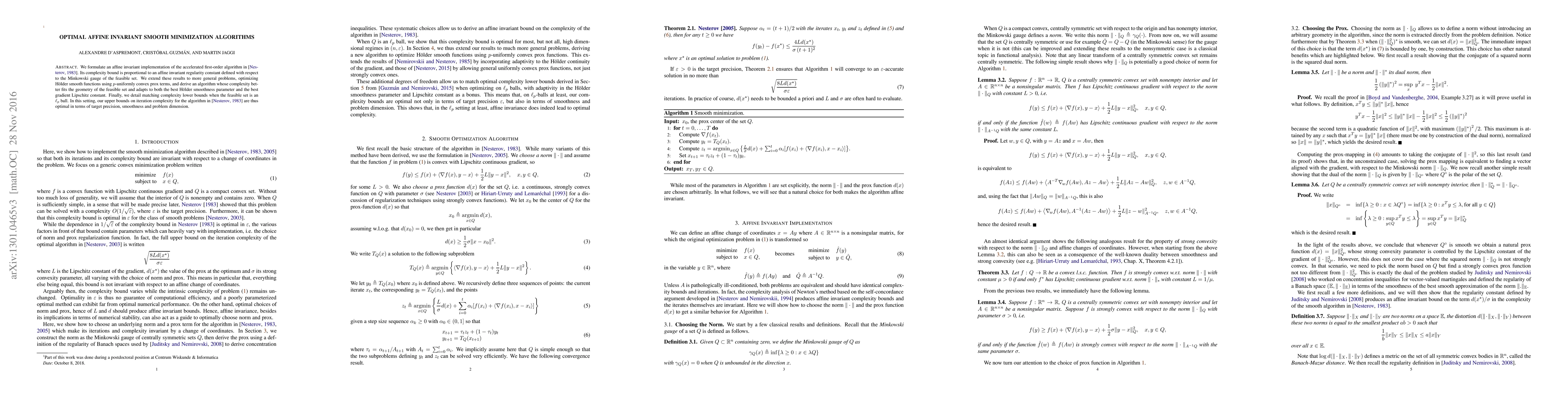 We formulate an affine invariant implementation of the accelerated first-order algorithm in Nesterov (1983). Its complexity bound is proportional to an affine invariant regularity constant defined with respect to the Minkowski gauge of the feasible set. We extend these results to more general problems, optimizing H\"older smooth functions using $p$-uniformly convex prox terms, and derive an algorithm whose complexity better fits the geometry of the feasible set and adapts to both the best H\"older smoothness parameter and the best gradient Lipschitz constant. Finally, we detail matching complexity lower bounds when the feasible set is an $\ell_p$ ball. In this setting, our upper bounds on iteration complexity for the algorithm in Nesterov (1983) are thus optimal in terms of target precision, smoothness and problem dimension.