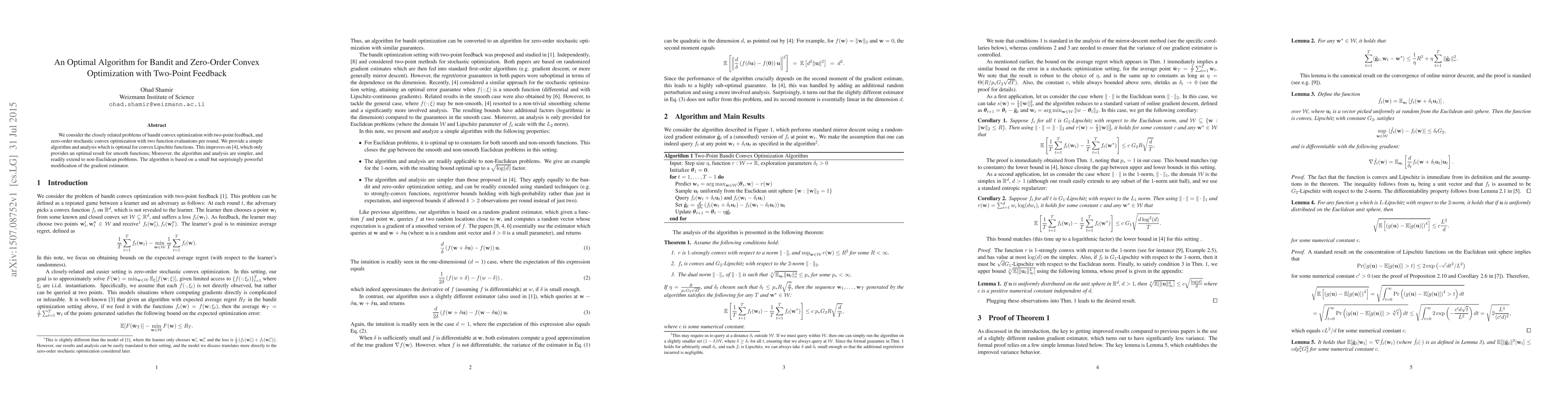 Researchers developed an optimal algorithm for bandit and zero-order convex optimization with two-point feedback, improving upon previous results and extending to non-Euclidean problems.