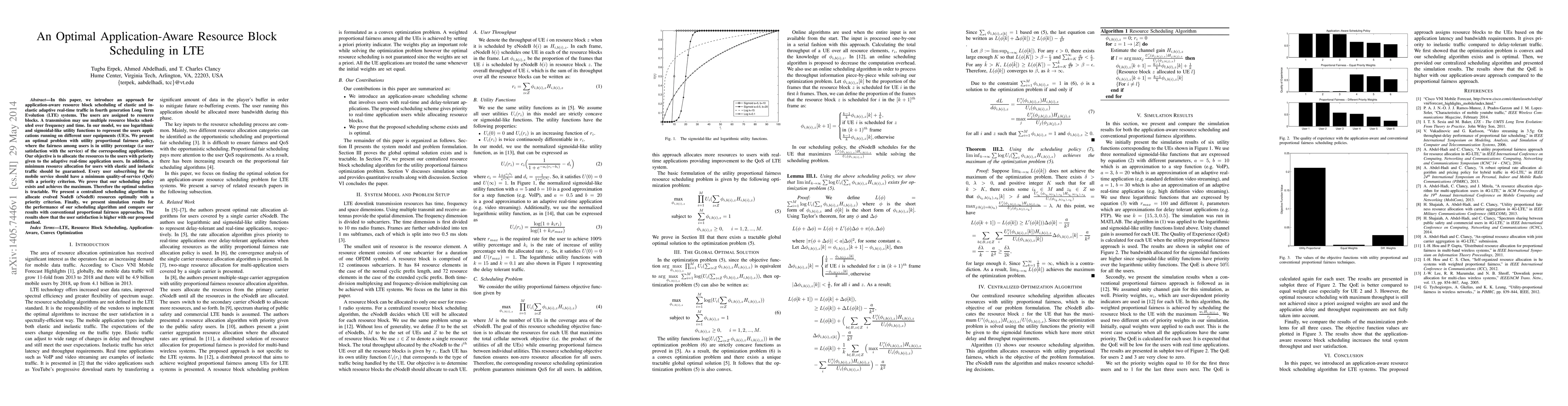 A novel application-aware resource allocation algorithm was proposed for LTE systems.