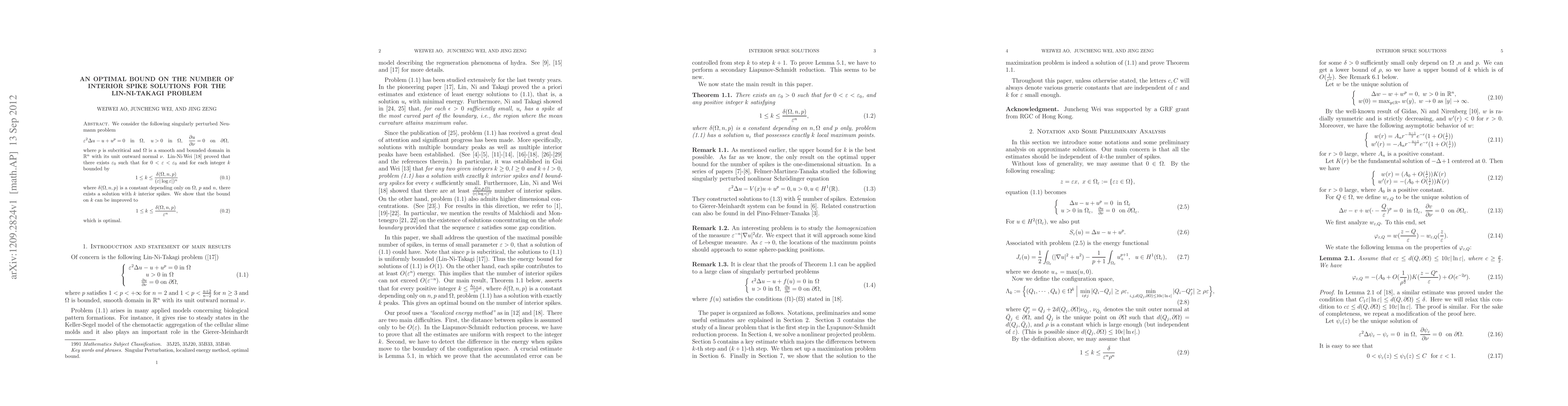 This research paper refines a bound on the number of interior spikes in solutions to a singularly perturbed Neumann problem, showing an optimal improvement from $k ightarrow k = rac{rac{ heta ( heta , n , p)}{| heta |^n}}$, where $ heta$ is small enough.