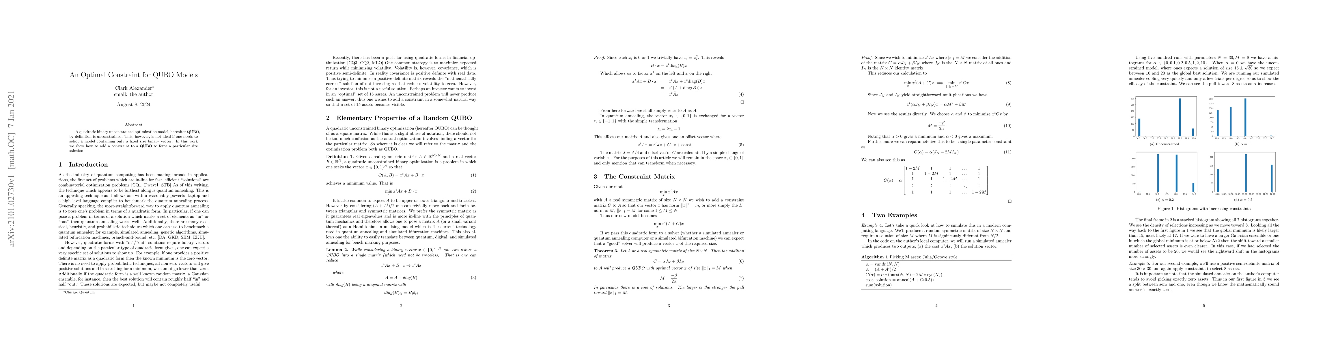 Researchers found a way to add a constraint to QUBO models to force specific size solutions, enabling binary vector selection. This allows for more efficient optimization in certain applications.