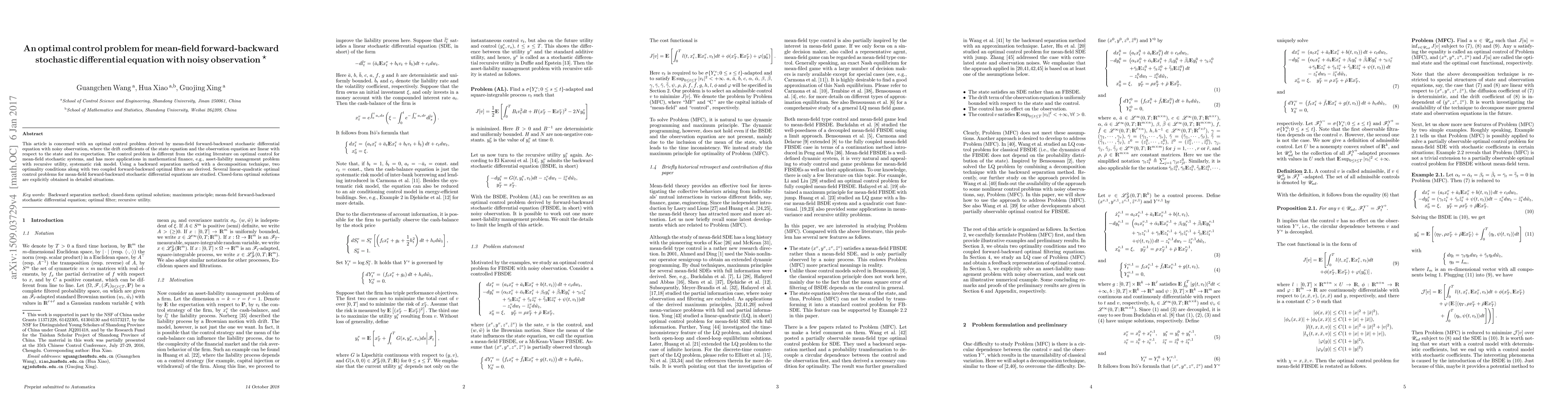 This paper addresses an optimal control problem for mean-field forward-backward stochastic differential equations with noisy observation, deriving novel optimality conditions and coupled optimal filters. It provides closed-form solutions for linear-quadratic problems, with applications in mathematical finance like asset-liability management.