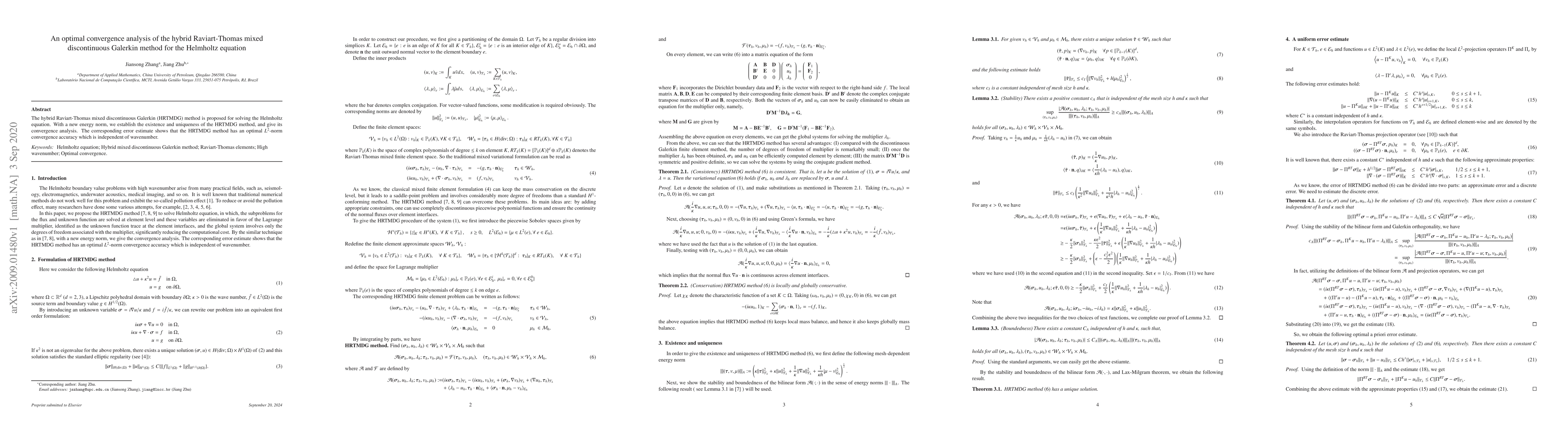 The HRTMDG method is proposed for solving the Helmholtz equation, with a new energy norm establishing existence, uniqueness, and optimal $L^2$-norm convergence accuracy independent of wavenumber.