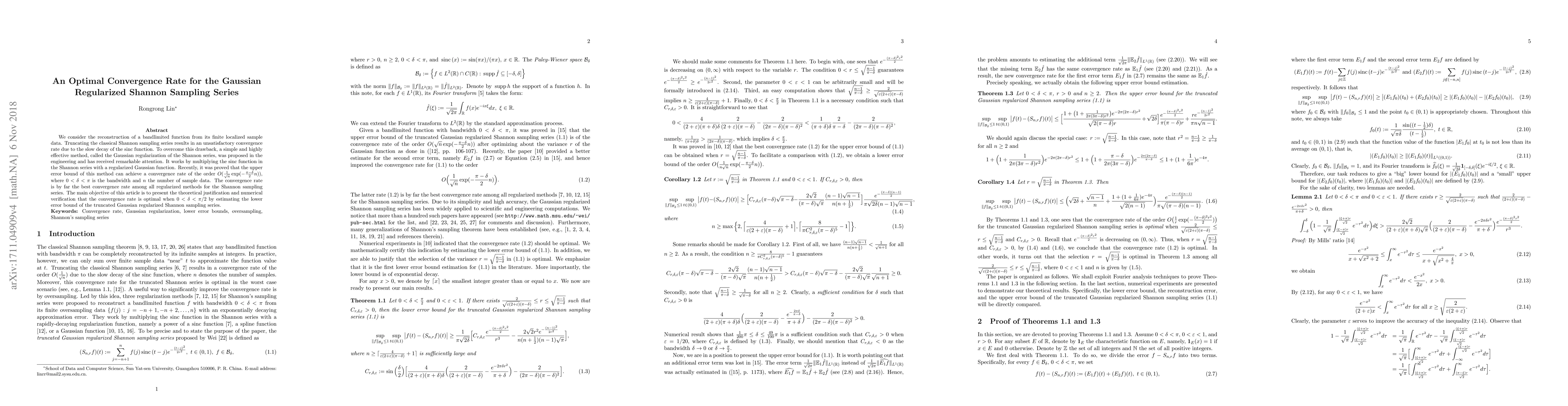 We consider the reconstruction of a bandlimited function from its finite localized sample data. Truncating the classical Shannon sampling series results in an unsatisfactory convergence rate due to the slow decay of the sinc function. To overcome this drawback, a simple and highly effective method, called the Gaussian regularization of the Shannon series, was proposed in the engineering and has received remarkable attention. It works by multiplying the sinc function in the Shannon series with a regularized Gaussian function. Recently, it was proved that the upper error bound of this method can achieve a convergence rate of the order $O(\frac{1}{\sqrt{n}}\exp(-\frac{\pi-\delta}{2}n))$, where $0<\delta<\pi$ is the bandwidth and $n$ the number of sample data. The convergence rate is by far the best convergence rate among all regularized methods for the Shannon sampling series. The main objective of this article is to present the theoretical justification and numerical verification that the convergence rate is optimal when $0<\delta<\pi/2$ by estimating the lower error bound of the truncated Gaussian regularized Shannon sampling series.