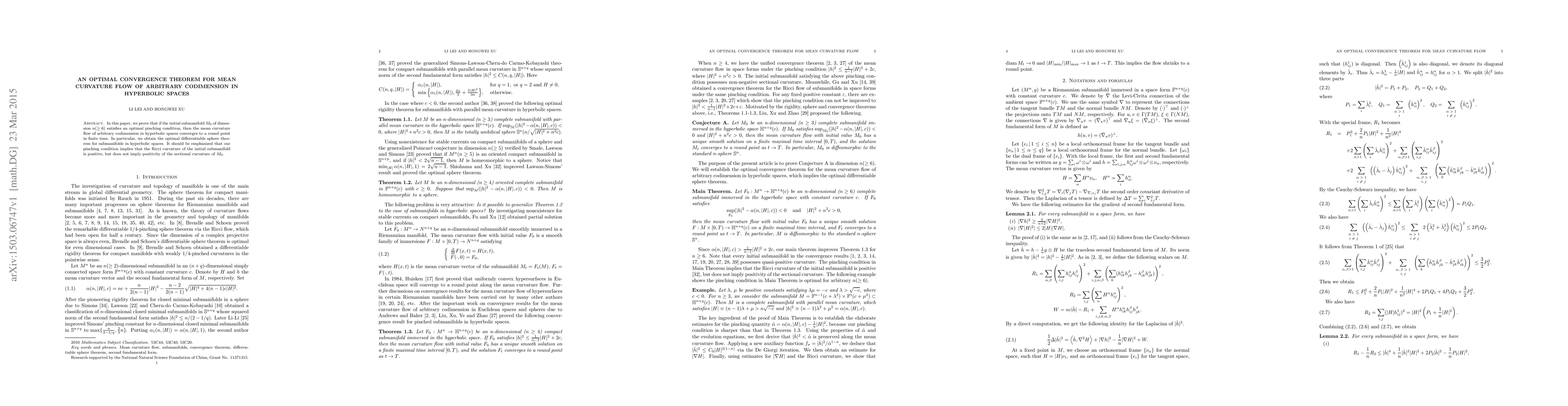 This paper proves that mean curvature flow in hyperbolic spaces converges to a round point in finite time if the initial submanifold meets an optimal pinching condition, leading to the optimal differentiable sphere theorem for such submanifolds. The condition ensures positive Ricci curvature but not necessarily positive sectional curvature.