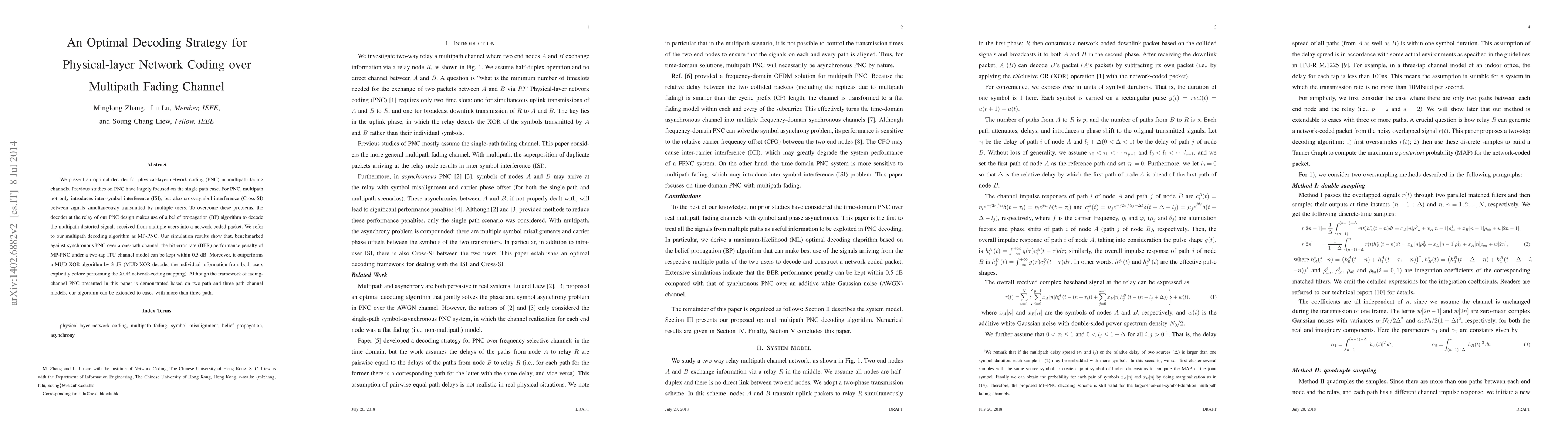 We present an optimal decoder for physical-layer network coding (PNC) in a multipath fading channels. Previous studies on PNC have largely focused on the single path case. For PNC, multipath not only introduces inter-symbol interference (ISI), but also cross-symbol interference (Cross-SI) between signals simultaneously transmitted by multiple users. In this paper, we assume the transmitters do not have channel state information (CSI). The relay in the PNC system, however, has CSI. The relay makes use of a belief propagation (BP) algorithm to decode the multipath-distorted signals received from multiple users into a network-coded packet. We refer to our multipath decoding algorithm as MP-PNC. Our simulation results show that, benchmarked against synchronous PNC over a one-path channel, the bit error rate (BER) performance penalty of MP-PNC under a two-tap ITU channel model can be kept within 0.5dB. Moreover, it outperforms a MUD-XOR algorithm by 3dB -- MUD-XOR decodes the individual information from both users explicitly before performing the XOR network-coding mapping. Although the framework of fading-channel PNC presented in this paper is demonstrated based on two-path and three-path channel models, our algorithm can be easily extended to cases with more than three paths.
