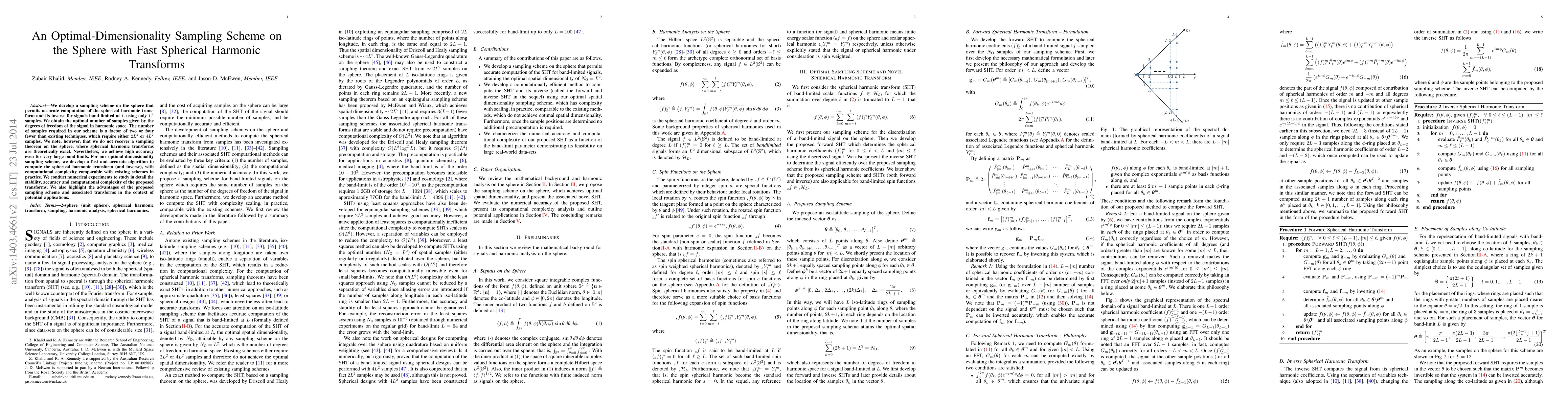 This paper proposes an optimal-dimensionality sampling scheme on the sphere that requires only $L^2$ samples to accurately compute spherical harmonic transforms, significantly reducing the sample count compared to existing methods. The developed fast algorithm maintains computational efficiency and achieves high accuracy for large band-limits.