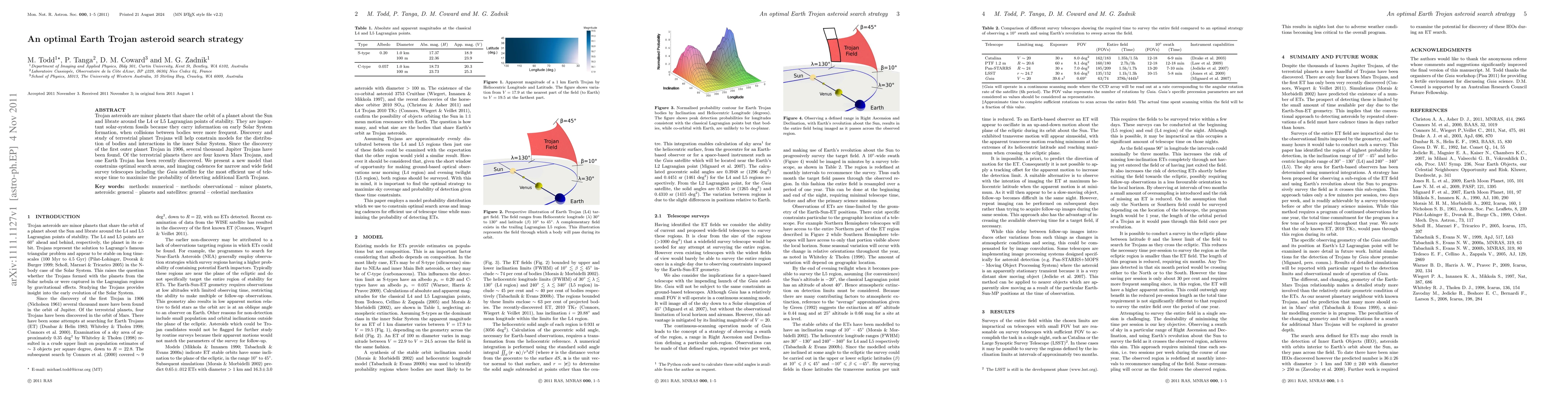 This paper proposes a new model to optimize the search for Earth Trojan asteroids, which share Earth's orbit and provide insights into early Solar System dynamics. It outlines efficient search strategies and imaging cadences for telescopes, including the Gaia satellite, to maximize the detection of additional Earth Trojans.
