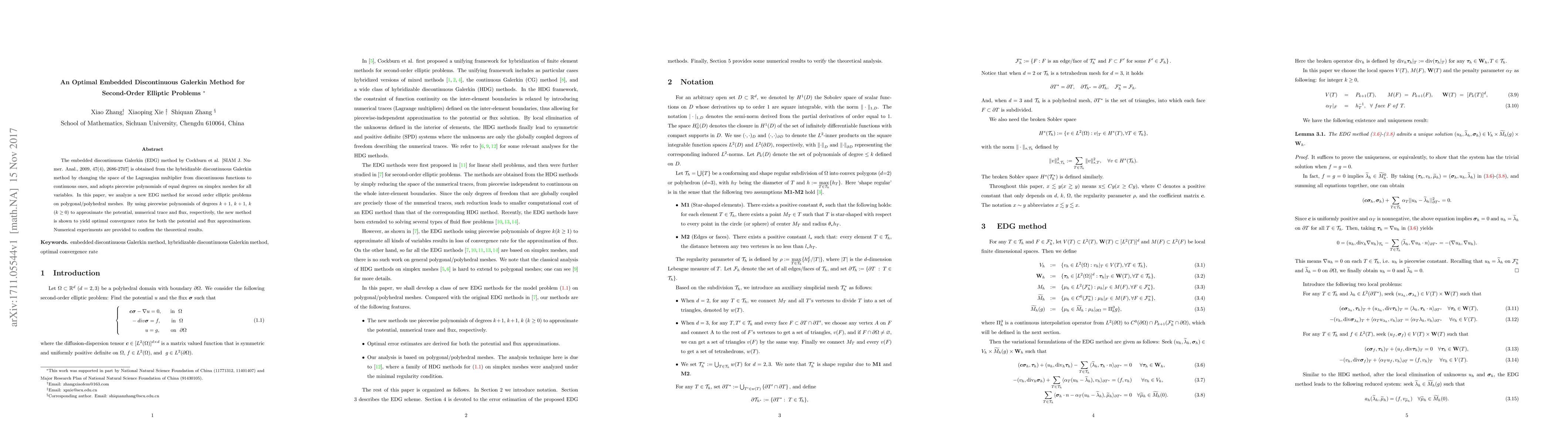 This paper introduces an optimal embedded discontinuous Galerkin (EDG) method for second-order elliptic problems on polygonal/polyhedral meshes, utilizing piecewise polynomials of degrees $k+1$, $k+1$, and $k$ for potential, numerical trace, and flux, respectively. The new method achieves optimal convergence rates for both potential and flux approximations, as confirmed by theoretical analysis and numerical experiments.