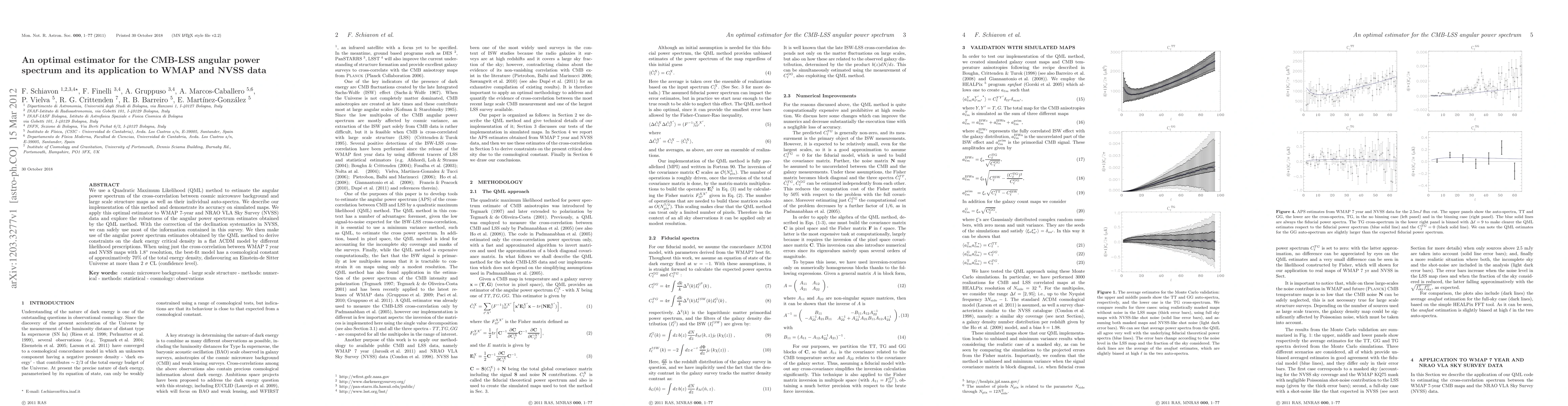 This paper introduces a Quadratic Maximum Likelihood (QML) method for estimating the angular power spectrum of cosmic microwave background and large scale structure maps, demonstrating its accuracy on simulated data. The method is applied to WMAP and NVSS data, yielding constraints on dark energy critical density, favoring a cosmological constant model over an Einstein-de Sitter Universe.
