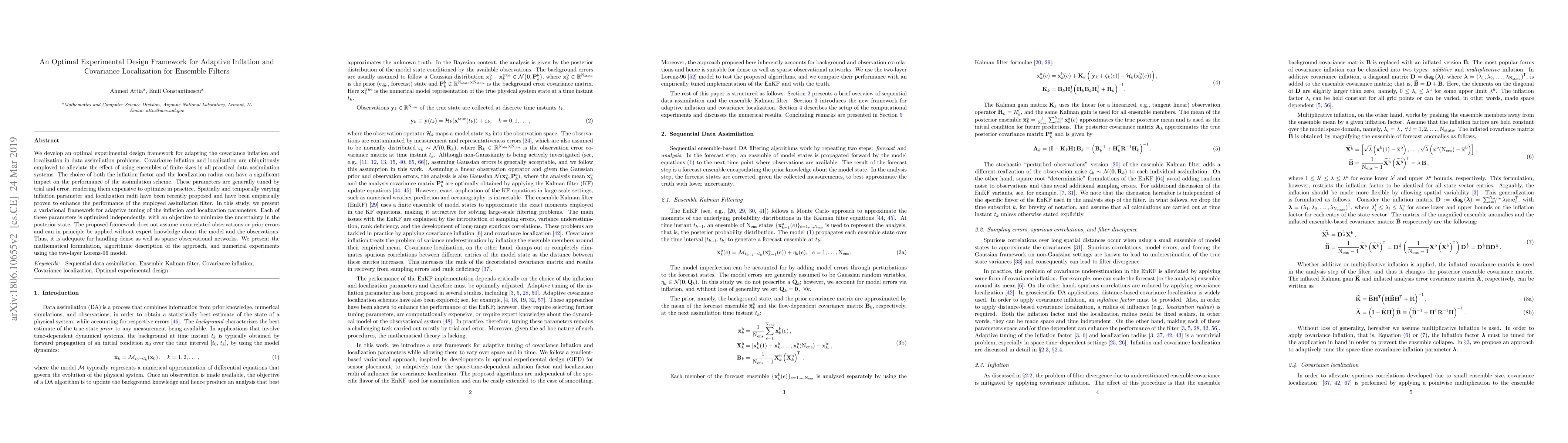 Researchers developed an optimal experimental design framework to adaptively tune inflation and localization parameters in data assimilation systems, improving performance without requiring expert knowledge.