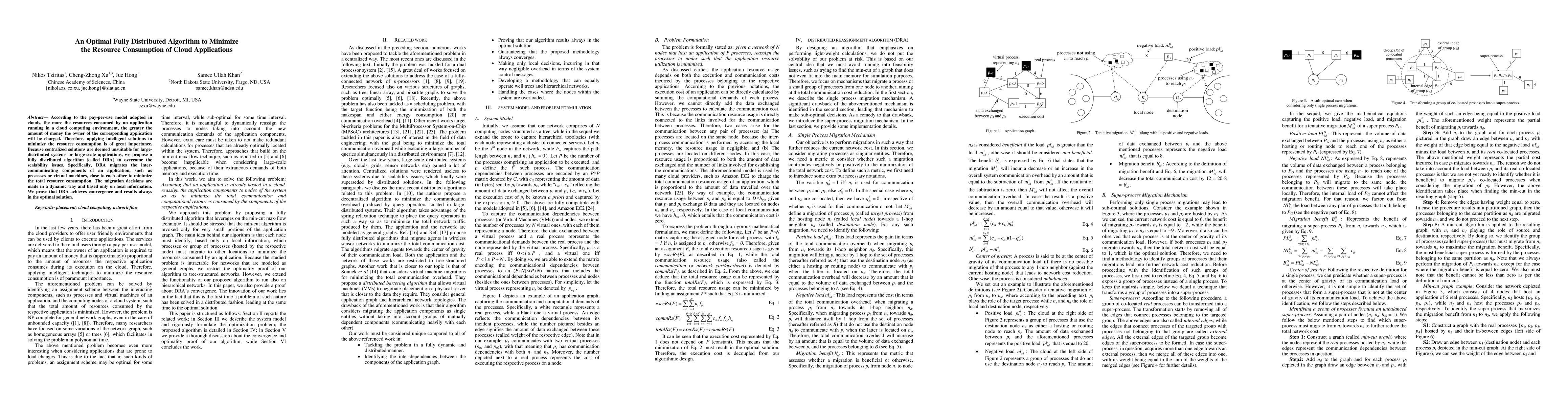 This paper proposes a fully distributed algorithm (DRA) to minimize resource consumption in cloud applications by dynamically migrating inter-communicating components based on local information. DRA achieves convergence and guarantees optimal resource usage without centralized control.