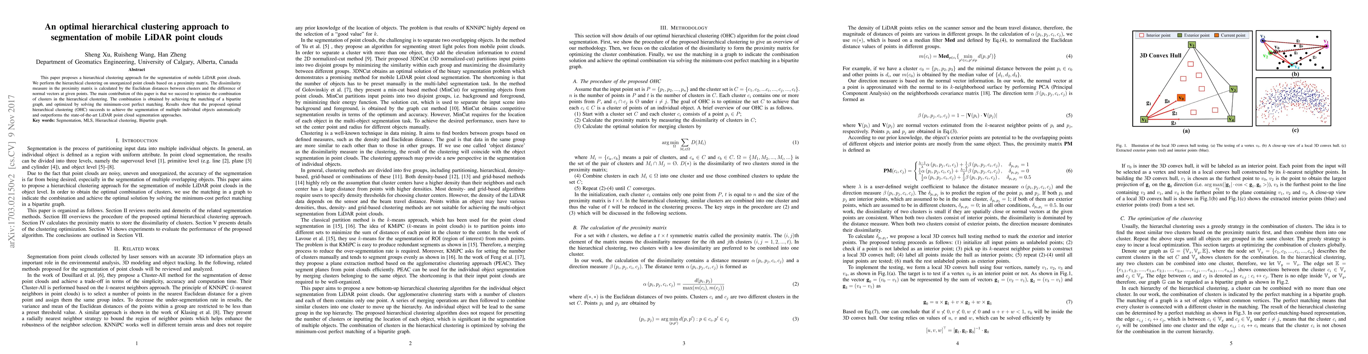 This paper introduces an optimal hierarchical clustering method for segmenting mobile LiDAR point clouds, optimizing cluster combinations through minimum-cost perfect matching in a bipartite graph. The approach outperforms existing methods, achieving accurate automatic segmentation of individual objects.