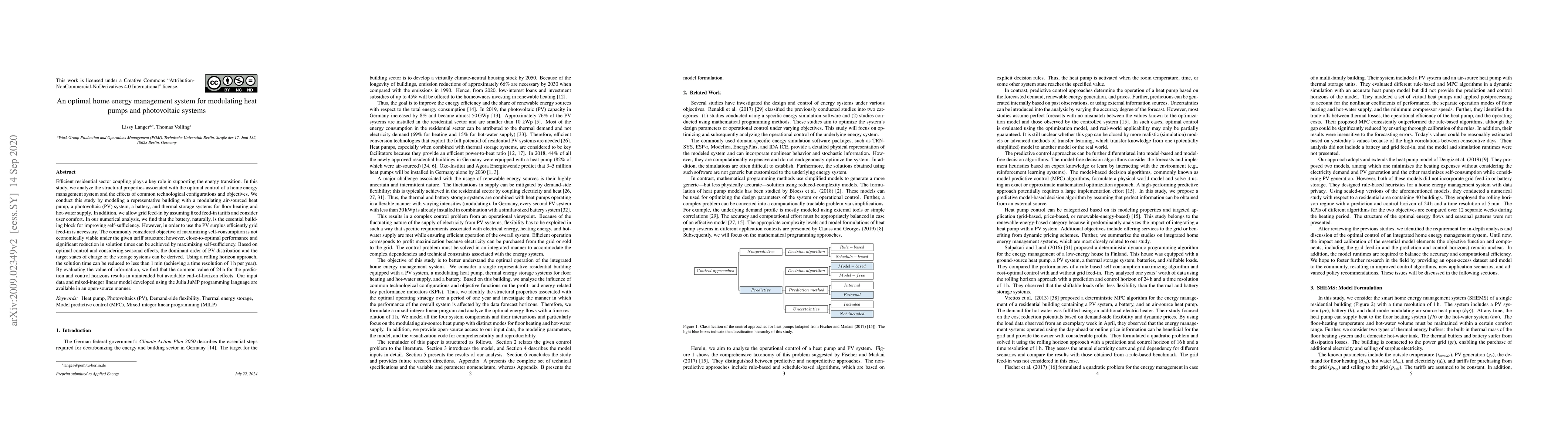 Researchers developed an optimal home energy management system to efficiently modulate heat pumps and photovoltaic systems, finding that a battery is crucial for self-sufficiency but grid feed-in is necessary to use PV surplus effectively.