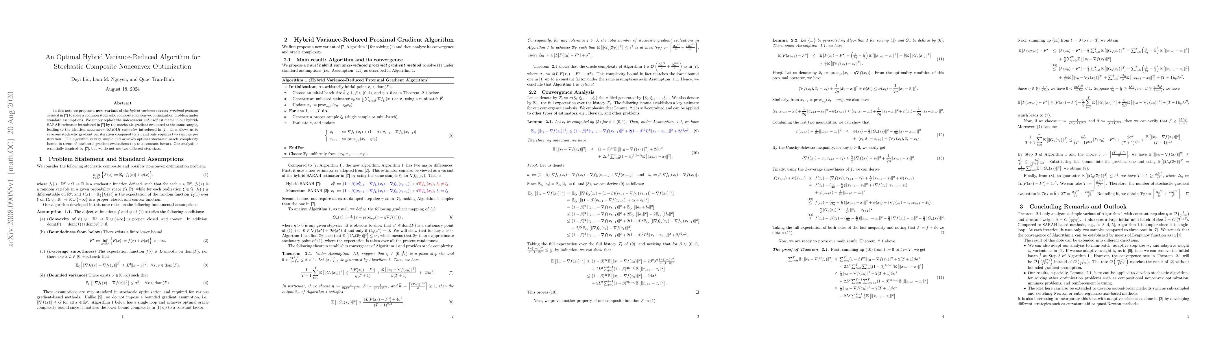 This paper introduces a new hybrid variance-reduced algorithm that optimizes the hybrid SARAH estimator by replacing the independent unbiased estimator with the stochastic gradient, achieving optimal complexity with fewer gradient evaluations. The algorithm requires only two samples per iteration and maintains optimal stochastic oracle complexity.
