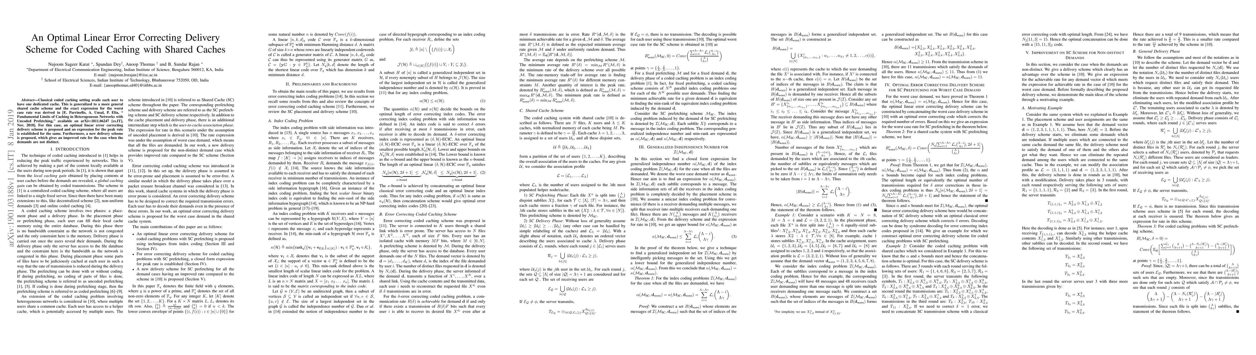 This paper proposes an optimal linear error correcting delivery scheme for a generalized coded caching scenario with shared caches, deriving an expression for the worst-case rate and establishing a peak rate. It also introduces an improved delivery scheme for cases where user demands are not distinct.