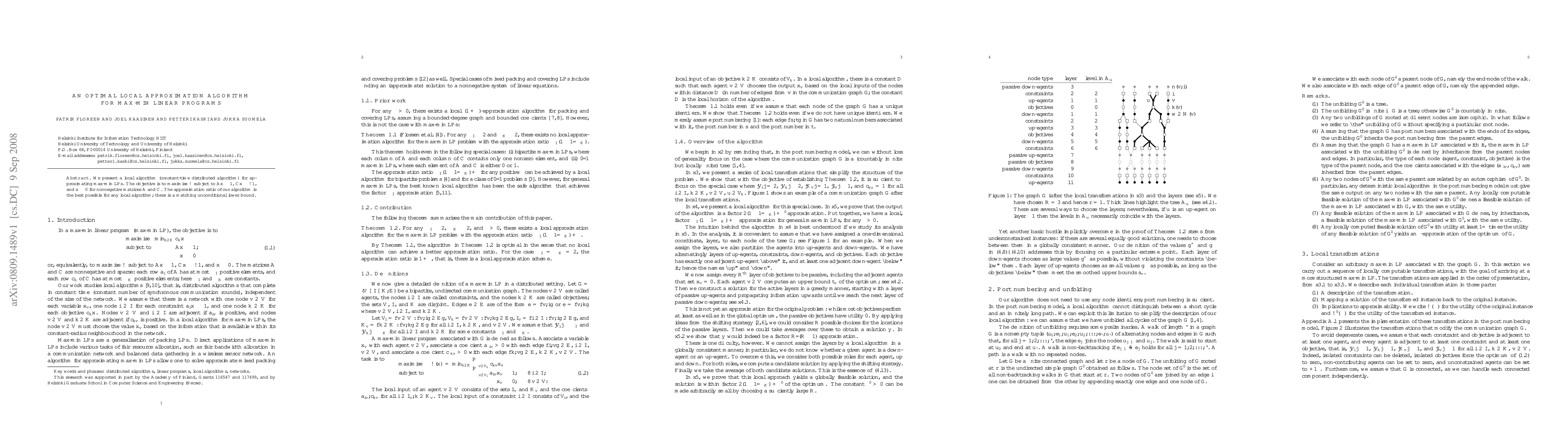 This paper introduces a constant-time distributed algorithm for approximating max-min linear programs, achieving the best possible approximation ratio for any local algorithm, with a matching unconditional lower bound.